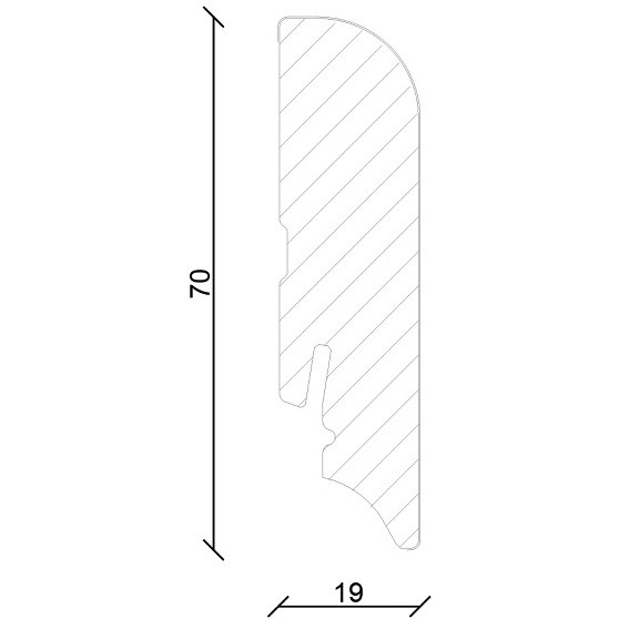 - GRÖSSE: Die Fußleiste mit den Abmessungen 19 x 70 x 2400 mm schafft einen sauberen Übergang zwischen Boden und Wand.