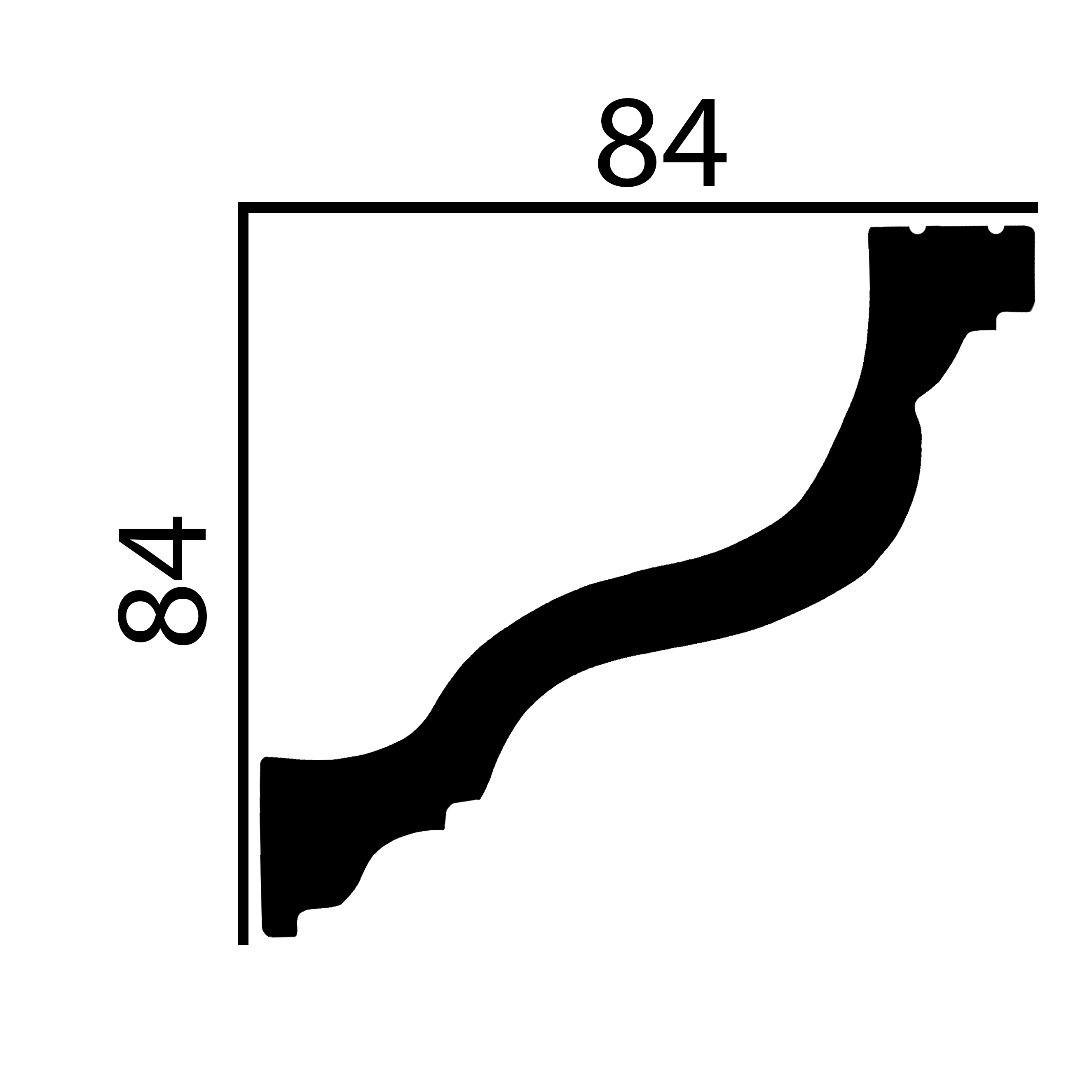 - GRÖSSE: Die Stuckleiste mit den Abmessungen 84 x 84 x 2000 mm schafft einen sauberen Übergang an der Wand oder Decke