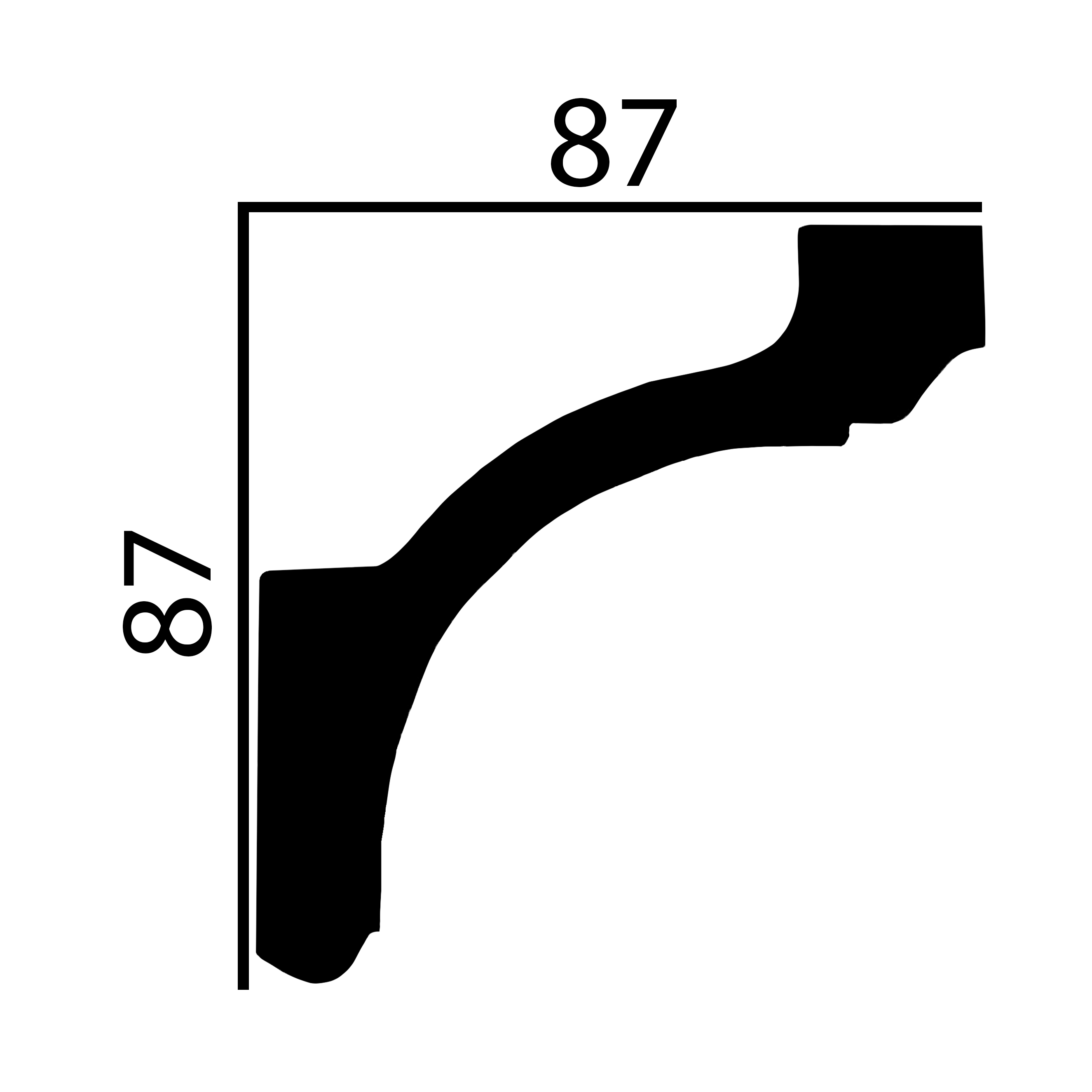 - GRÖSSE: Die Stuckleiste mit den Abmessungen 87 x 87 x 2000 mm schafft einen sauberen Übergang an der Wand oder Decke