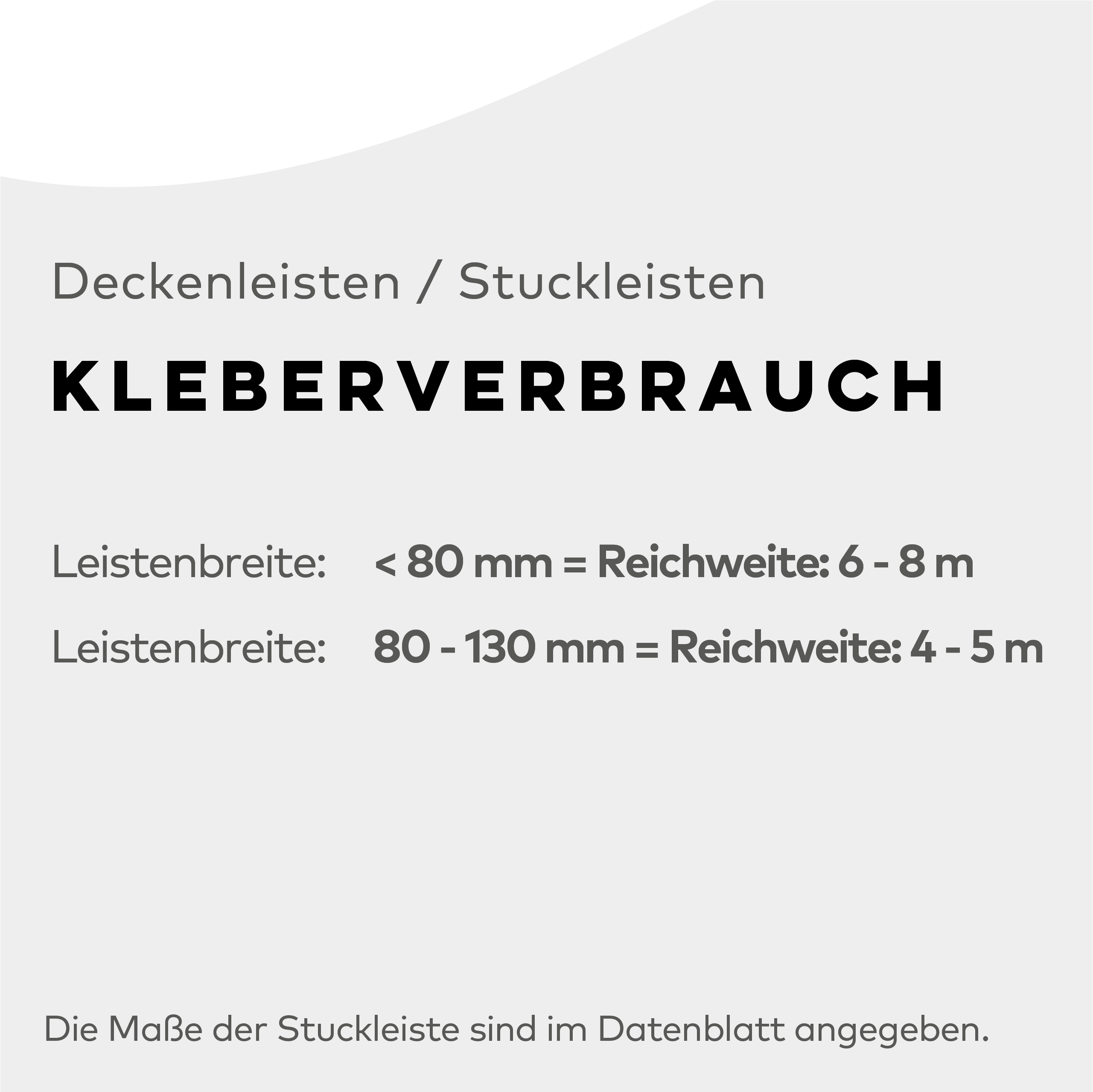 Kleberverbrauch für Deckenleisten / Stuckleisten pro Kartusche
