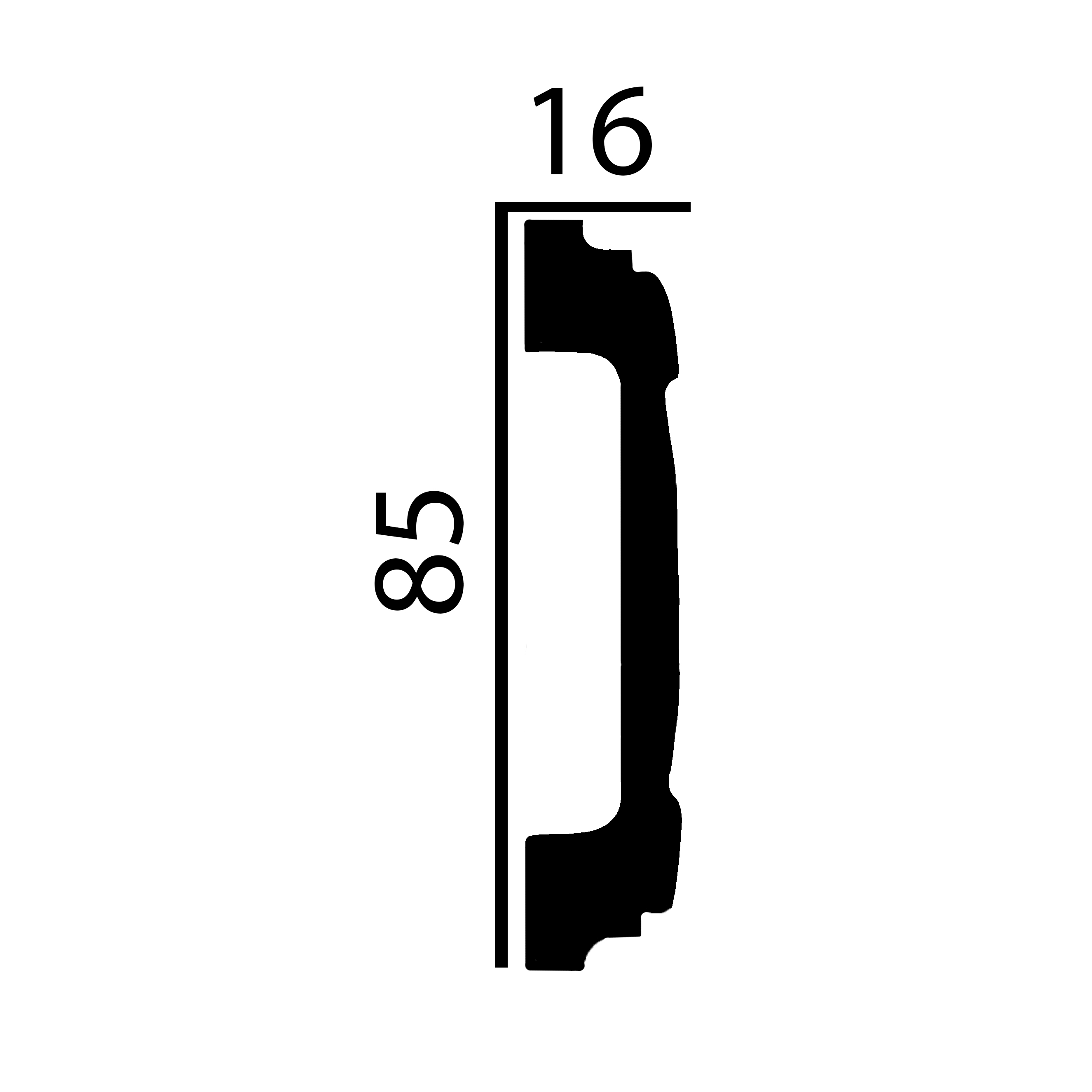 - GRÖSSE: Die Wandleiste mit den Abmessungen 16 x 85 x 2000 mm schafft einen sauberen Übergang an der Wand oder Decke.