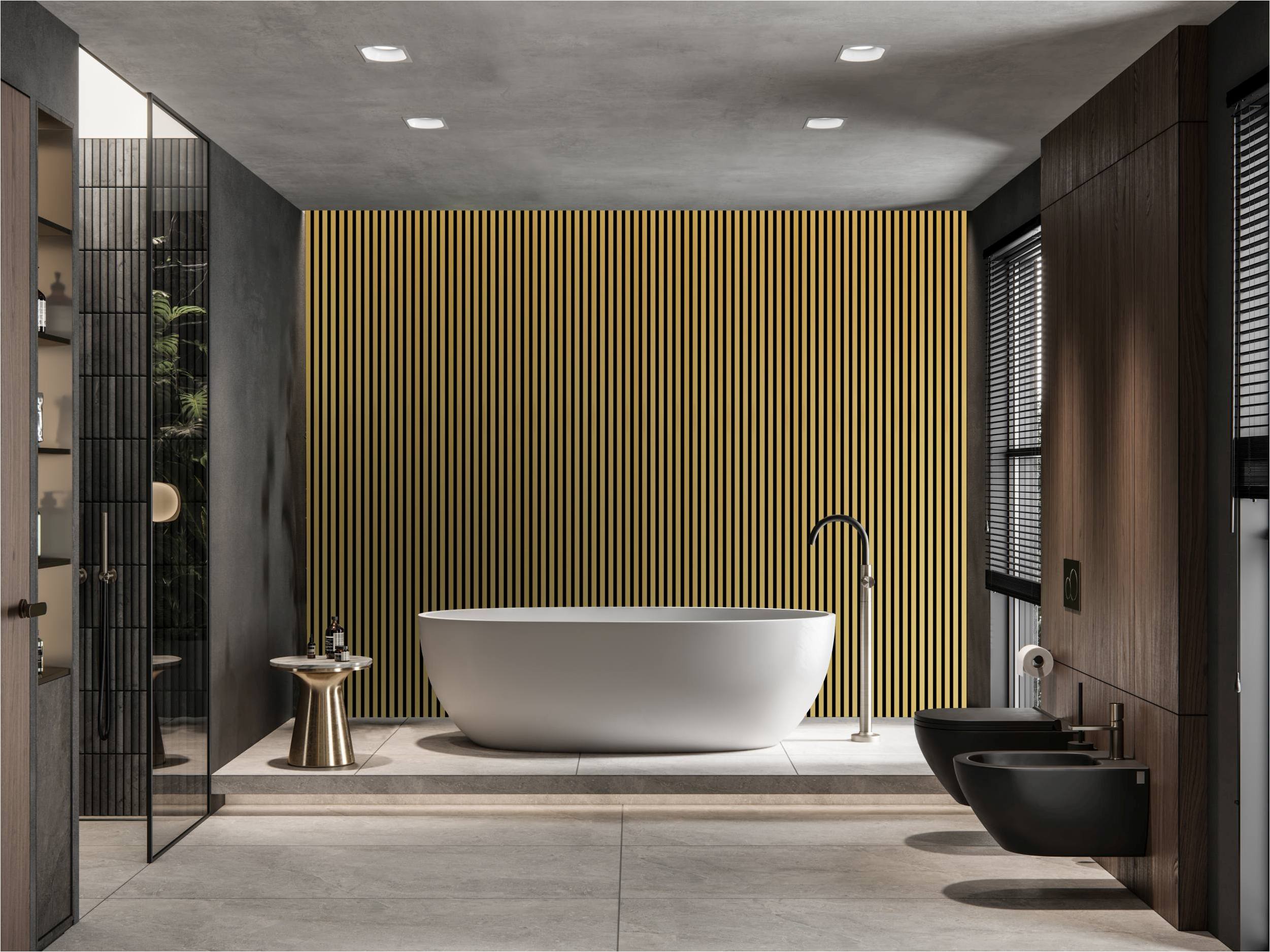Outdoor Akustik Paneele 565 x 17 x 2400 mm Alu Feuchtraumpaneele Gold Außenpaneele Lammellenoptik