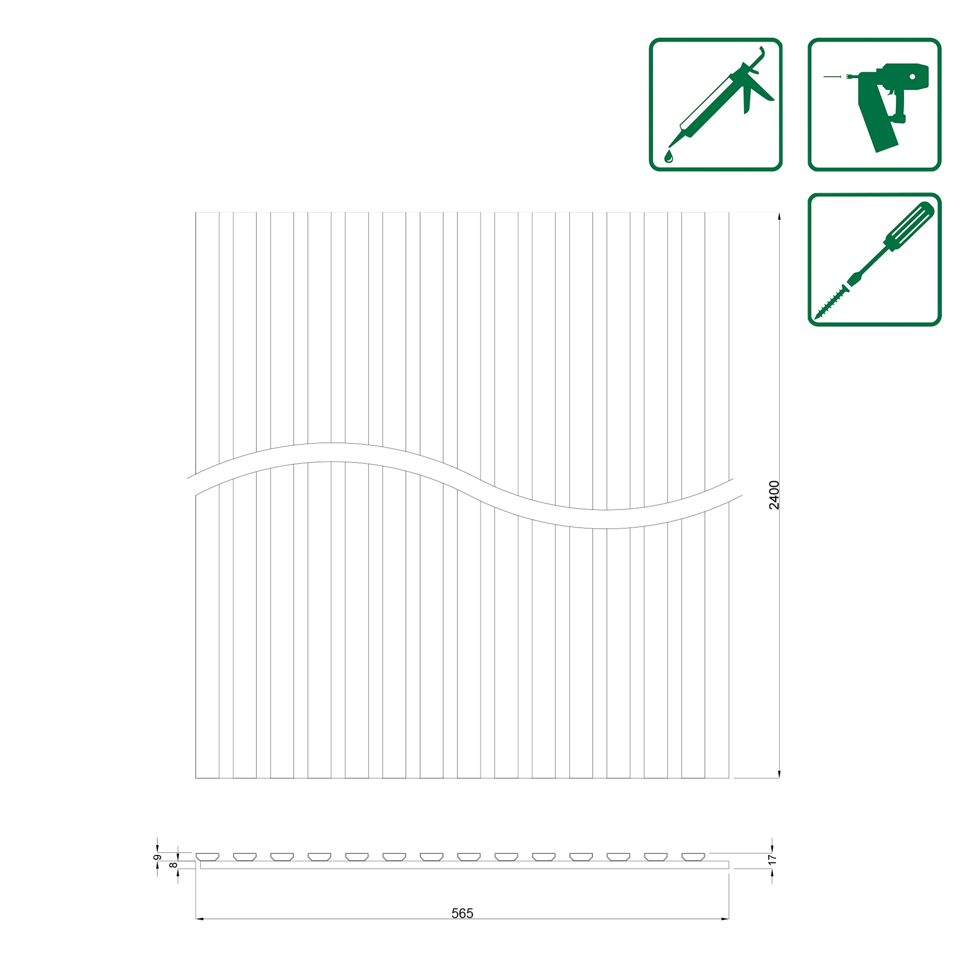- Abmessungen: 2400 x 565 mm mit einer Dicke von 17 mm