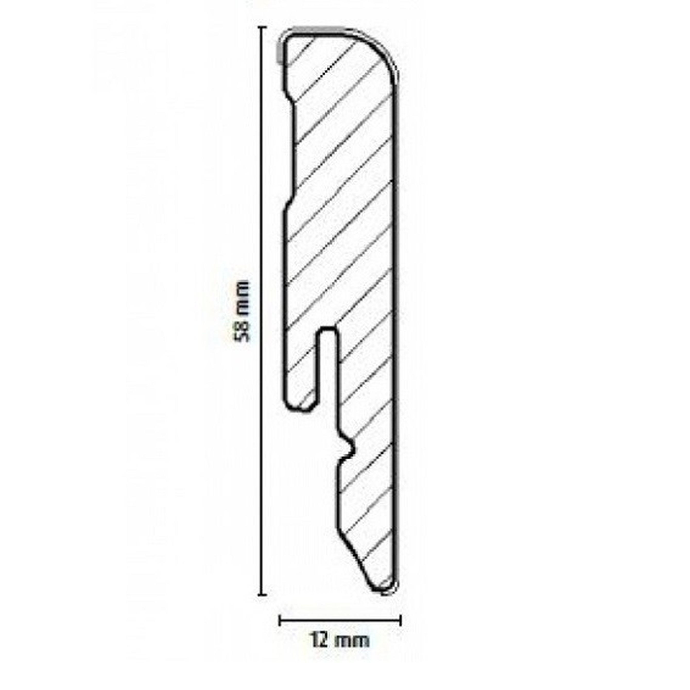 - GRÖSSE: Die Fußleiste mit den Abmessungen 12 x 58 x 2400 mm schafft einen sauberen Übergang zwischen Boden und Wand.