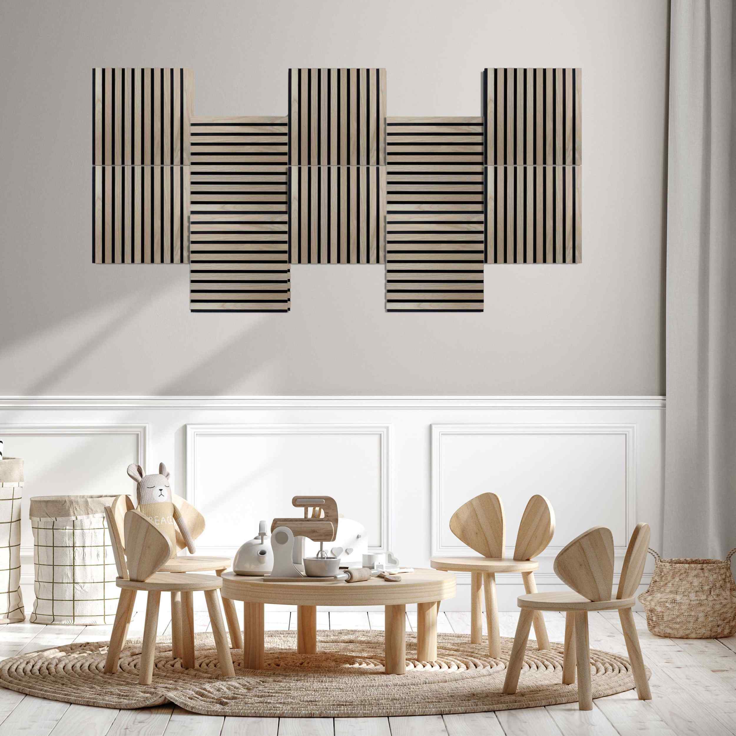 Akustik Paneele sind der Trend in der Raumgestaltung. Die Wandpaneele sind nicht nur optisch ansprechend, sondern tragen auch dazu bei, die Raumakustik zu verbessern, indem sie die Lautstärke und Lärmbelastung effektiv regulieren. Die lamellenförmigen Holz Paneele verleihen Deinem Raum einen modernen Touch und schaffen gleichzeitig eine natürliche und behagliche Atmosphäre. Ob Du sie großflächig an der gesamten Wand anbringst oder als individuelle Akzentstücke nutzt - mit Akustik Wandpaneelen gestaltest Du ein einzigartiges Wohlfühlambiente, das nicht nur gut aussieht, sondern sich auch gut anhört.