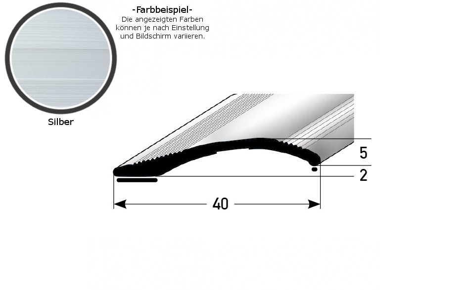 - GRÖSSE: Das Ausgleichsprofil mit den Abmessungen 40 x 5 x 1000 mm hat eine Einfasshöhe von 2 - 16 mm.