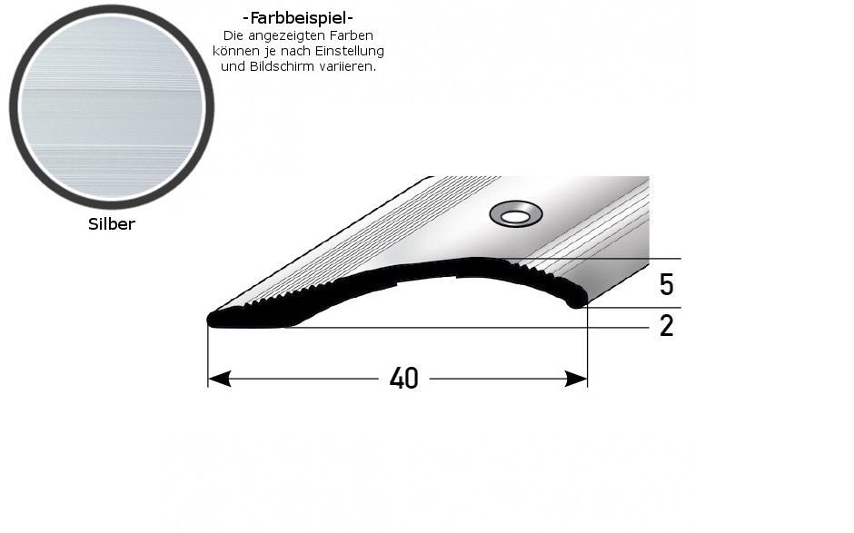 - GRÖSSE: Das Ausgleichsprofil mit den Abmessungen 40 x 5 x 2700 mm hat eine Einfasshöhe von 2 - 16 mm.