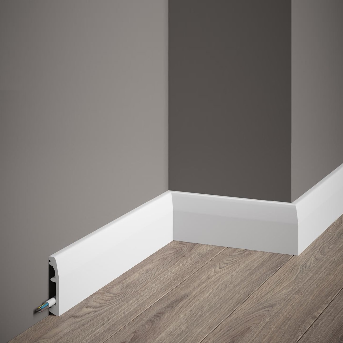 Hinweis: Die Sockelleisten Außenwinkel werden als vorgefertigtes Element geliefert, welches nur noch mittig in zwei Teile getrennt werden muss.