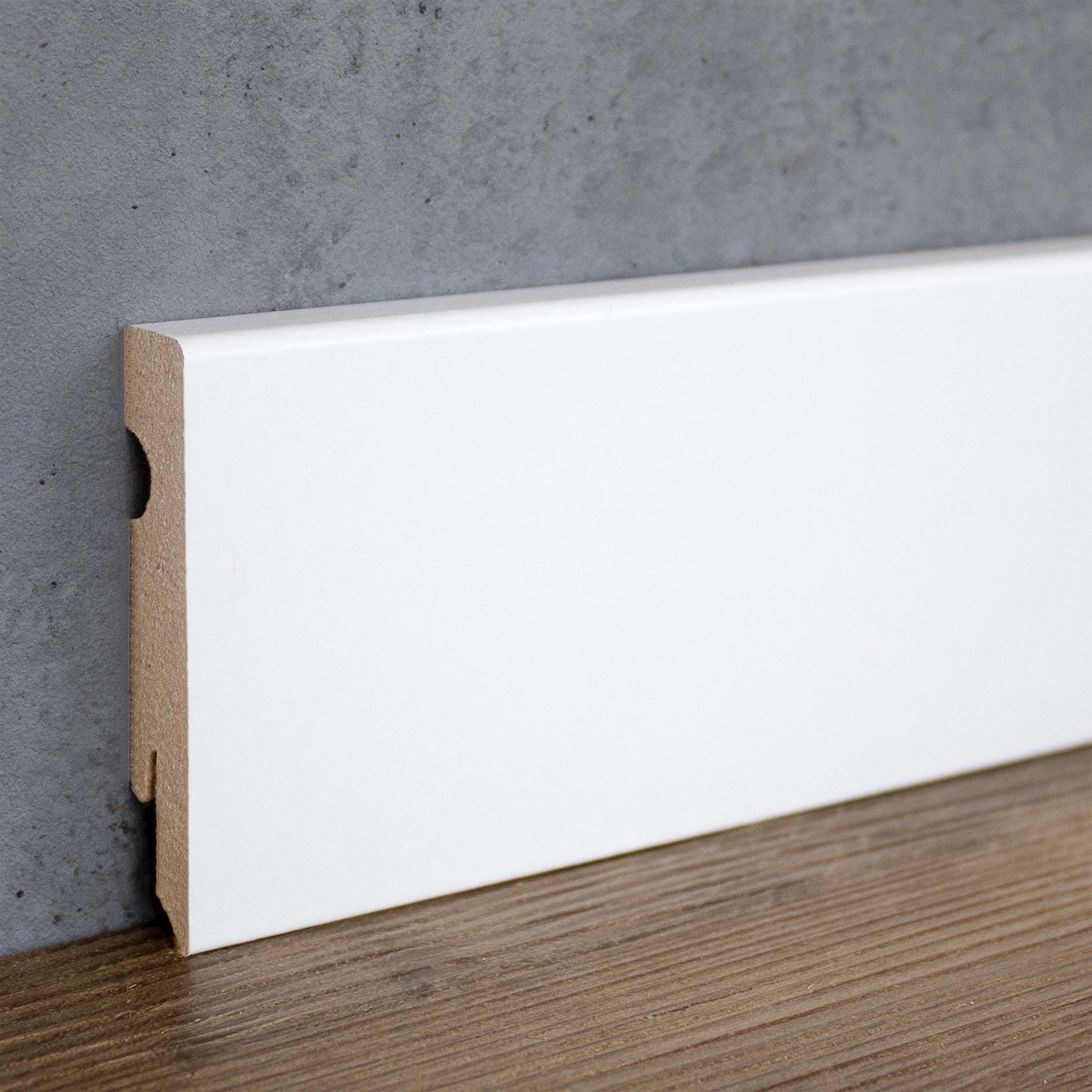 PROVISTON | eckige Sockelleiste | flache Fußleiste | 15 x 80 x 2400 mm | MDF weiß | folierte Leiste