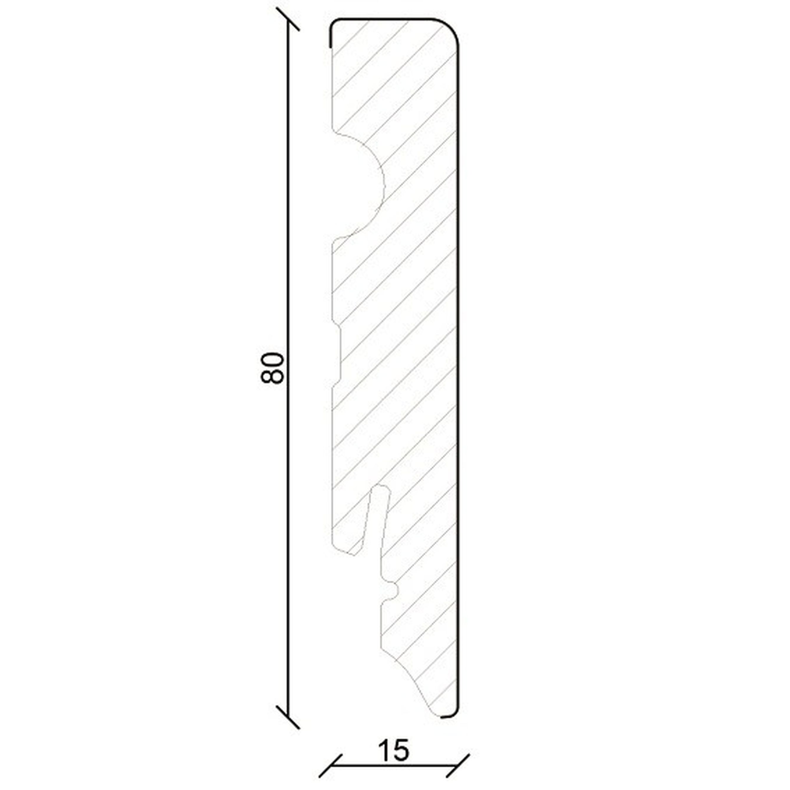 - GRÖSSE: Die Fußleiste mit den Abmessungen 15 x 80 x 2400 mm schafft einen sauberen Übergang zwischen Boden und Wand.