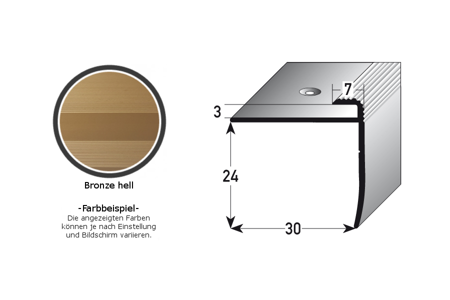 - GRÖSSE: Das Abschlussprofil mit den Abmessungen 30 x 27 x 1000 x 3 mm hat eine Einfassung von 3 mm.