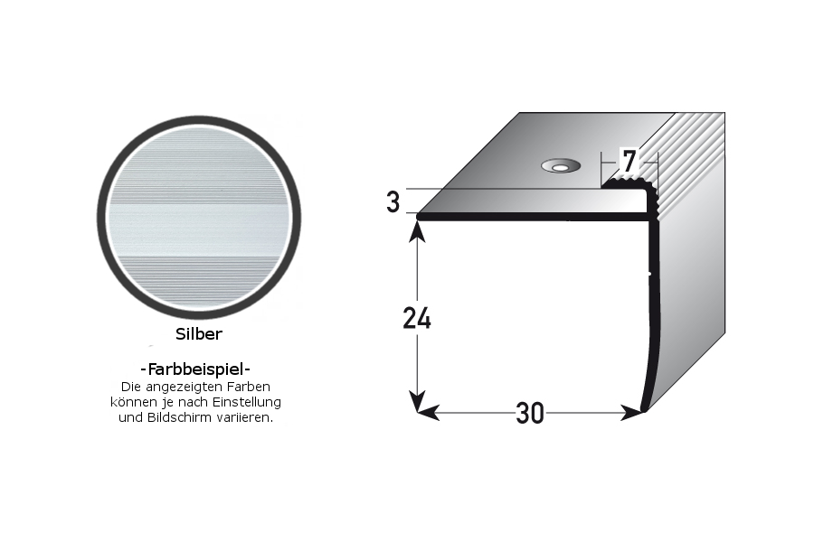 - GRÖSSE: Das Abschlussprofil mit den Abmessungen 30 x 27 x 1000 x 3 mm hat eine Einfassung von 3 mm.