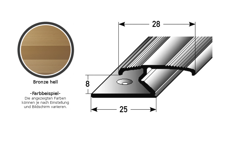 In stark beanspruchten Bereichen sollte das Profil verschraubt UND zusätzlich verklebt werden. Soll die Belastbarkeit erhöht werden, so ist eine kraftschlüssige Ausfüllung des Hohlraums zwischen Metallprofil und Bodenbelag zu Empfehlen.