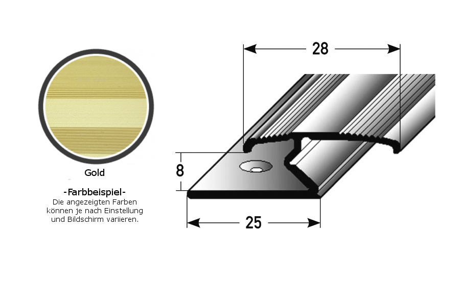 In stark beanspruchten Bereichen sollte das Profil verschraubt UND zusätzlich verklebt werden. Soll die Belastbarkeit erhöht werden, so ist eine kraftschlüssige Ausfüllung des Hohlraums zwischen Metallprofil und Bodenbelag zu Empfehlen.