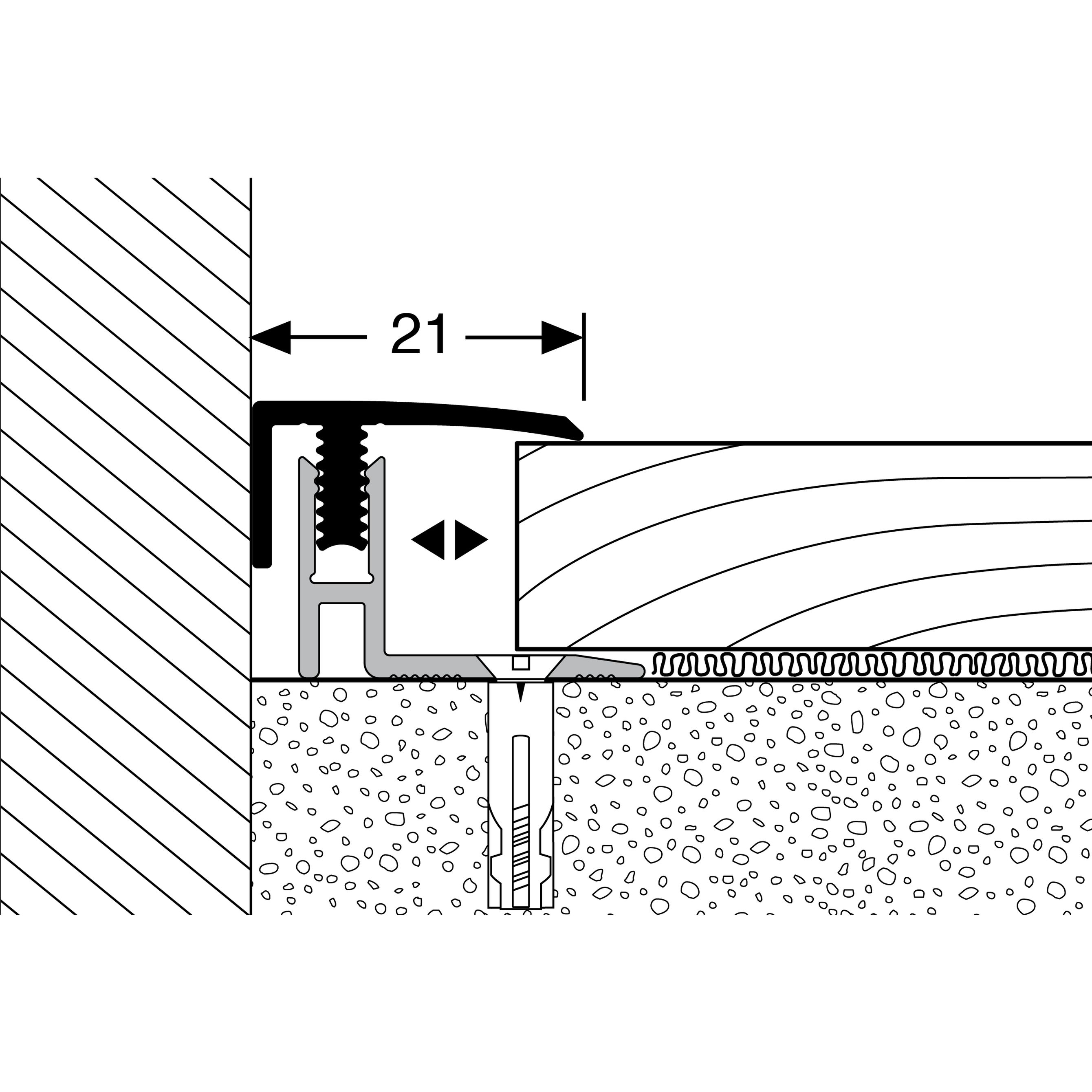 - GRÖSSE: Das Abschlussprofil mit den Abmessungen 21 x 12 - 17 x 2000 mm hat eine Einfassung von 12 - 17 mm und führt zu sauberen Wandabschlüssen.