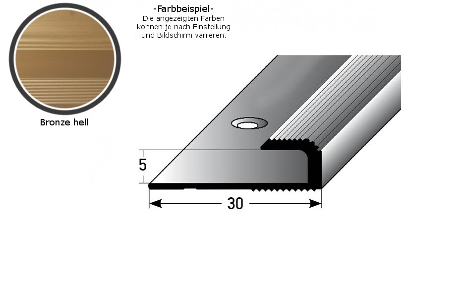 - GRÖSSE: Das Abschlussprofil mit den Abmessungen 30 x 5 x 1000 x 5 mm hat eine Einfassung von 5 mm.