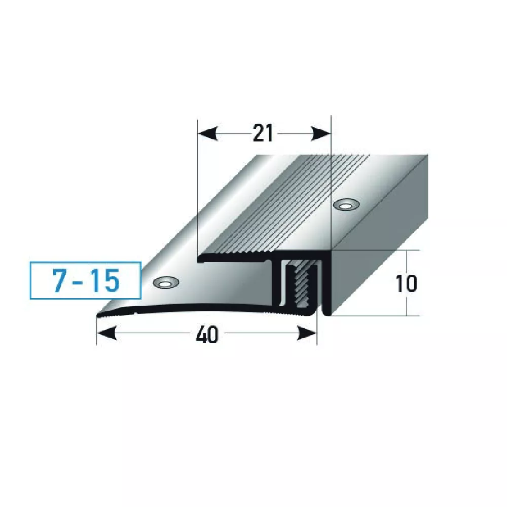 - GRÖSSE: Das Abschlussprofil mit den Abmessungen 21 x 10 x 2700 x 7 - 15 mm hat eine Einfassung von 7 - 15 mm.