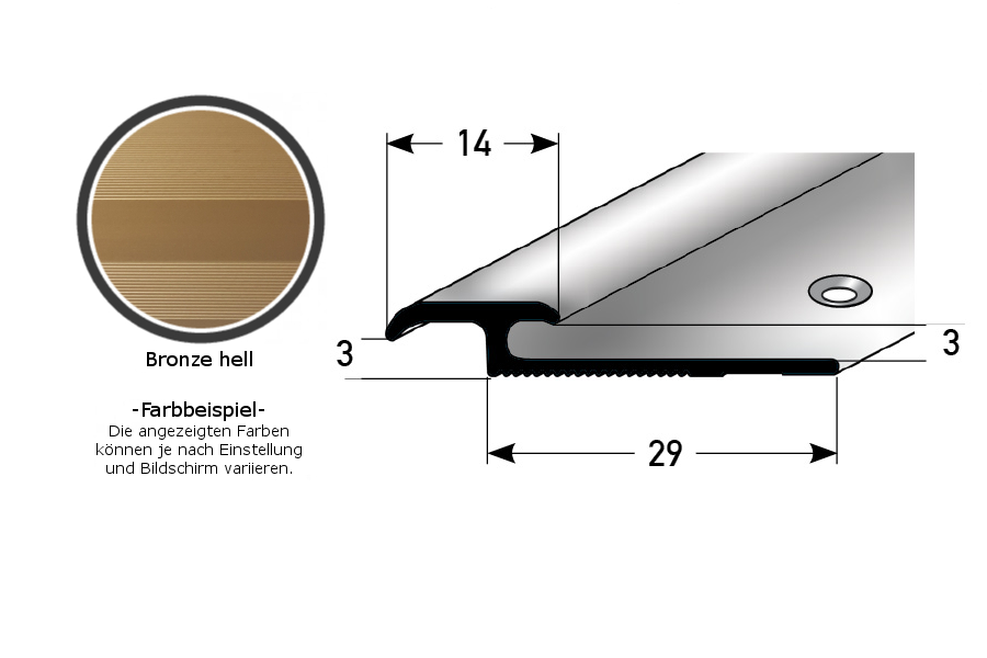 - GRÖSSE: Das Abschlussprofil mit den Abmessungen 29 x 3 x 2700 x 3 mm hat eine Einfassung von 3 mm.