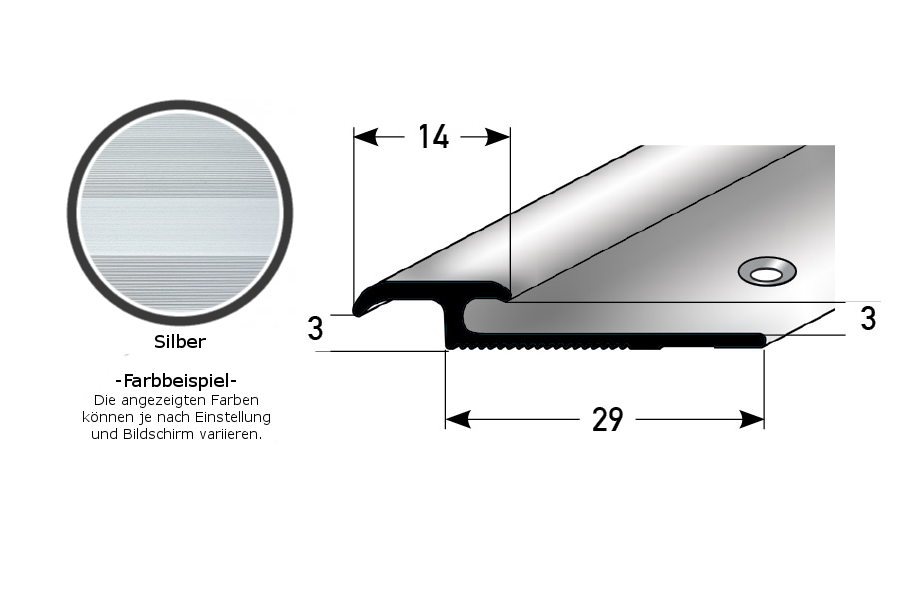 - GRÖSSE: Das Abschlussprofil mit den Abmessungen 29 x 3 x 1000 x 3 mm hat eine Einfassung von 3 mm.