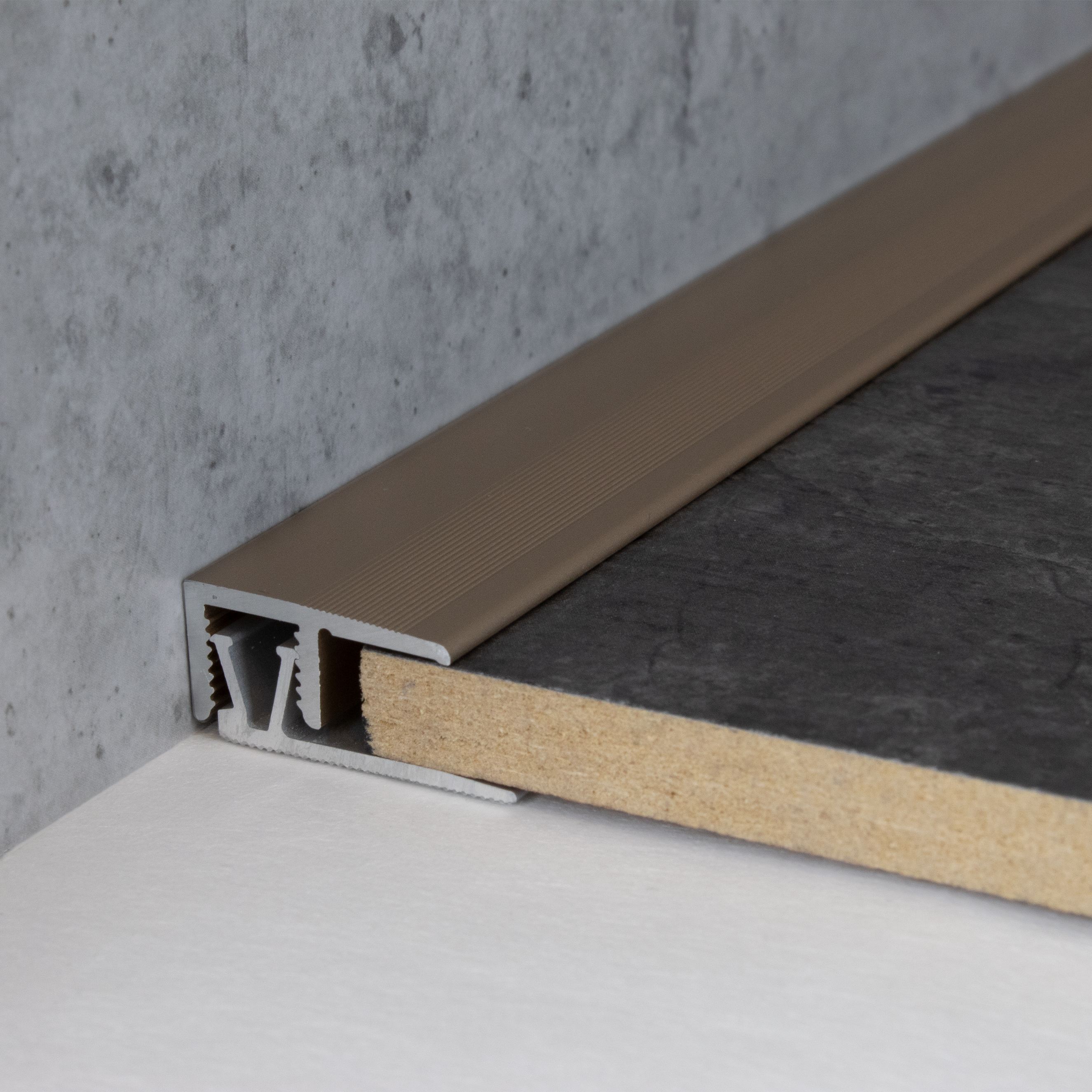 Unsere Abschlussprofile überzeugen durch stilvolles Design, erstklassige Verarbeitung und ihre Fähigkeit, sich perfekt in Dein Raumdesign und an den Bodenbelag einzufügen. Die Montage ist unkompliziert und die Auswahl an Designs ist groß. Die Einfassprofile schaffen nicht nur eine optisch ansprechende Abschlusskante, sondern auch saubere Übergänge zwischen Wand und Bodenbelag.