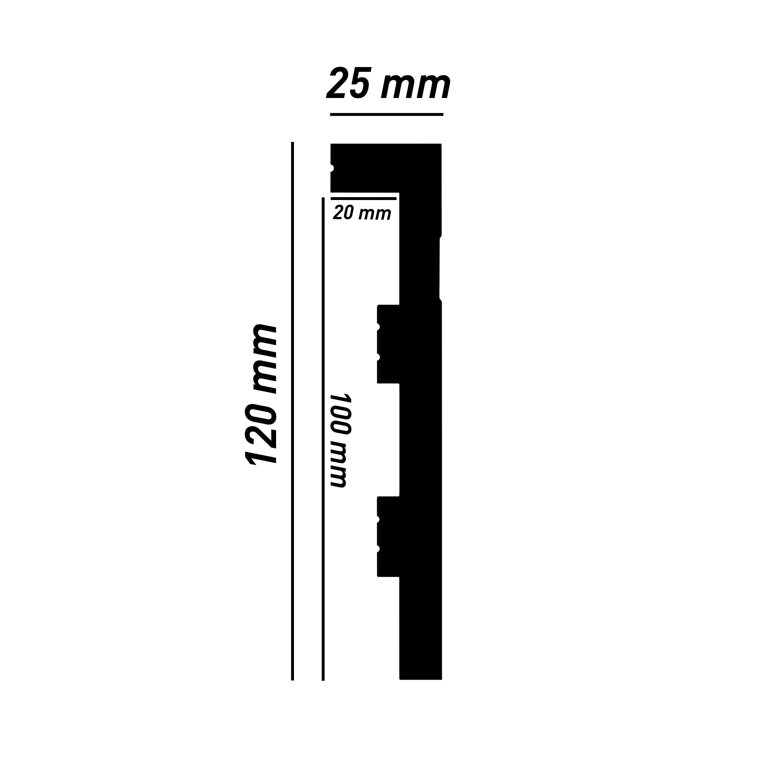 - GRÖSSE: Die Fußleiste mit den Abmessungen 25 x 120 x 2000 mm schafft einen sauberen Übergang zwischen Boden und Wand.