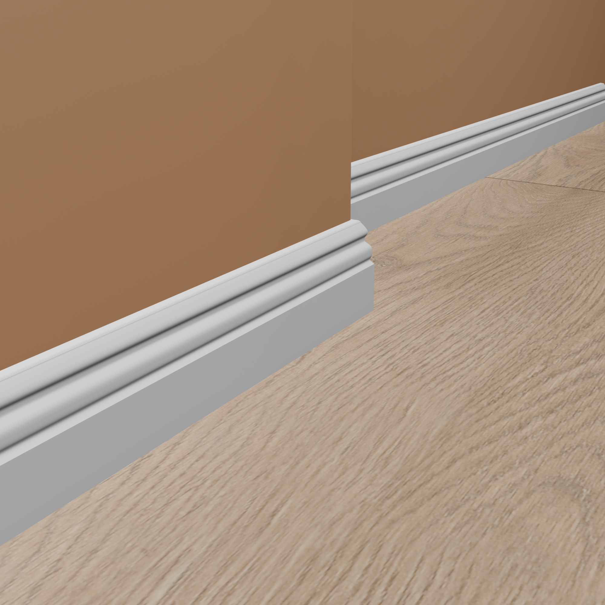 - ANWENDUNGSBEREICH: Die Sockelleiste eignet sich ideal für den Einsatz in nahezu allen Wohnräumen. Sie passt zu vielen Bodenbelägen, einschließlich Holz, Fliesen, Vinyl, Laminat, Teppich und mehr. Hinweis: Die Leiste ist nicht für Feuchträume geeignet.