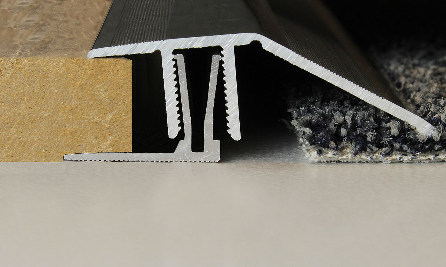 Unsere Anpassungsprofile bestechen durch eine stilvolle Ästhetik, erstklassige Verarbeitung und ihre Fähigkeit, sich nahtlos in das Raumdesign und an den Untergrund anzupassen. Die Anpassungs- und Höhenausgleichsprofile sind in verschiedenen Designs verfügbar und können mühelos montiert werden. Sie ermöglichen perfekte Übergänge zwischen zwei Bodenbelägen unterschiedlicher Höhen. Das Ergebnis ist ein optisch einwandfreies Finish.