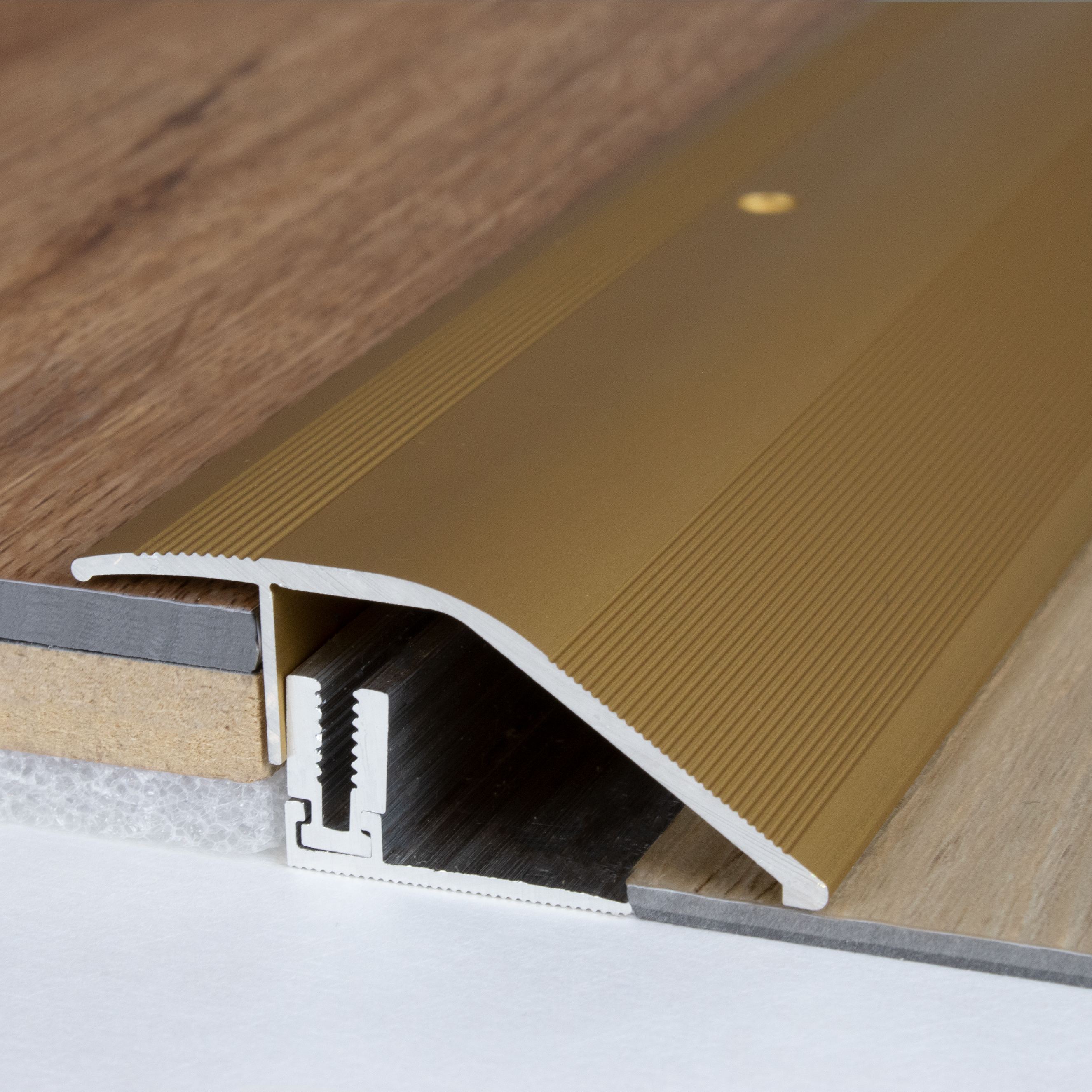 Unsere Anpassungsprofile bestechen durch eine stilvolle Ästhetik, erstklassige Verarbeitung und ihre Fähigkeit, sich nahtlos in das Raumdesign und an den Untergrund anzupassen. Die Anpassungs- und Höhenausgleichsprofile sind in verschiedenen Designs verfügbar und können mühelos montiert werden. Sie ermöglichen perfekte Übergänge zwischen zwei Bodenbelägen unterschiedlicher Höhen. Das Ergebnis ist ein optisch einwandfreies Finish.
