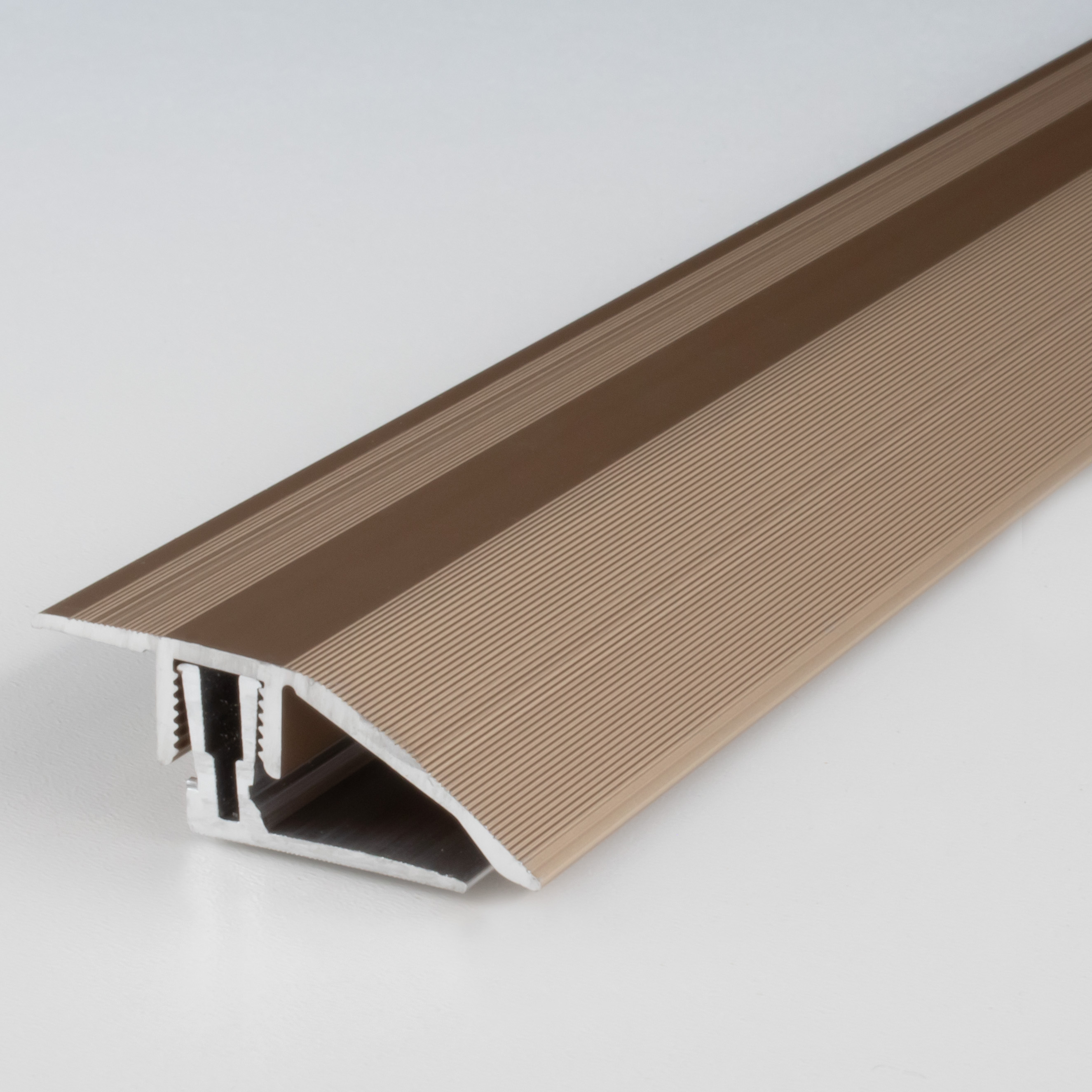 Unsere Anpassungsprofile bestechen durch eine stilvolle Ästhetik, erstklassige Verarbeitung und ihre Fähigkeit, sich nahtlos in das Raumdesign und an den Untergrund anzupassen. Die Anpassungs- und Höhenausgleichsprofile sind in verschiedenen Designs verfügbar und können mühelos montiert werden. Sie ermöglichen perfekte Übergänge zwischen zwei Bodenbelägen unterschiedlicher Höhen. Das Ergebnis ist ein optisch einwandfreies Finish.