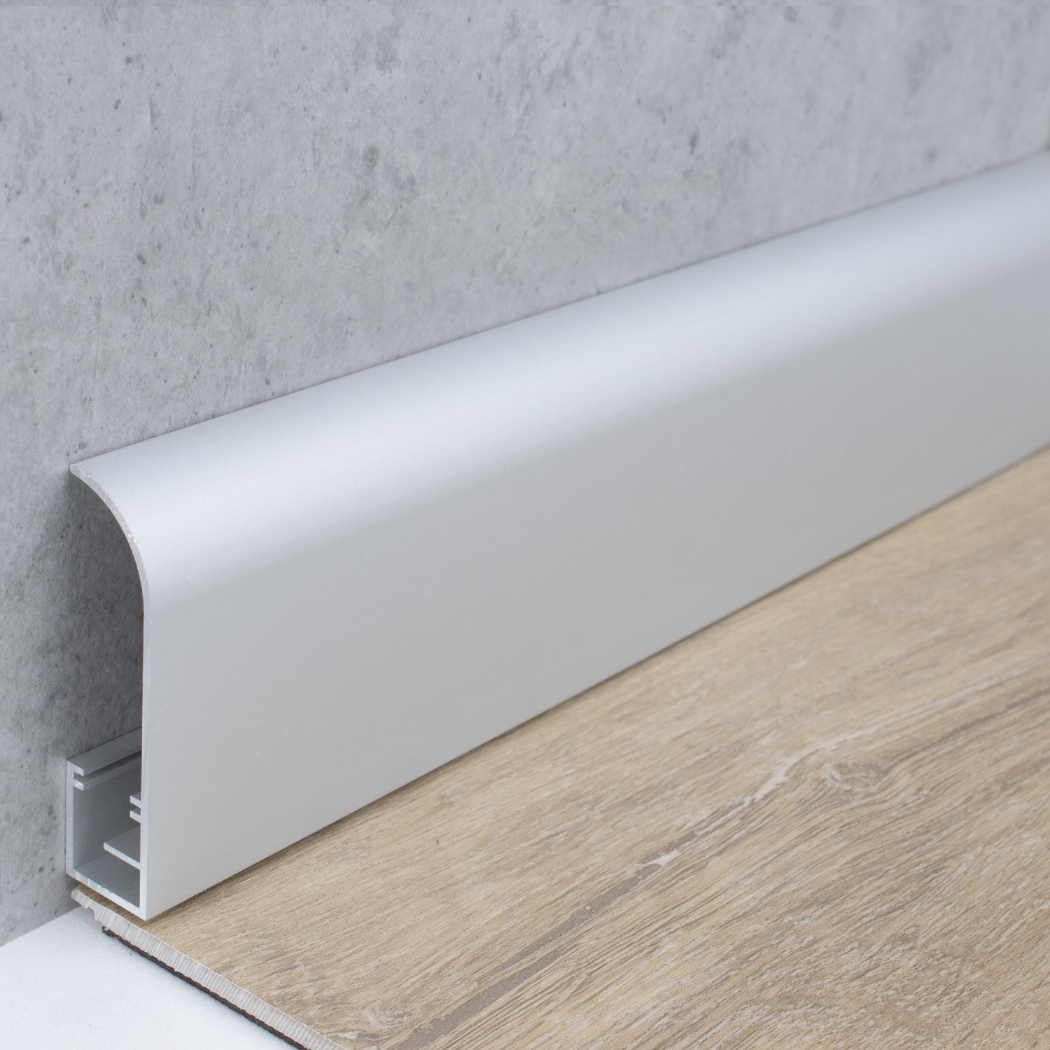 GRÖSSE: Die Metallsockelleiste mit den Abmessungen 15.8 x 60 x 2500 mm schafft einen sauberen Übergang zwischen Boden und Wand.