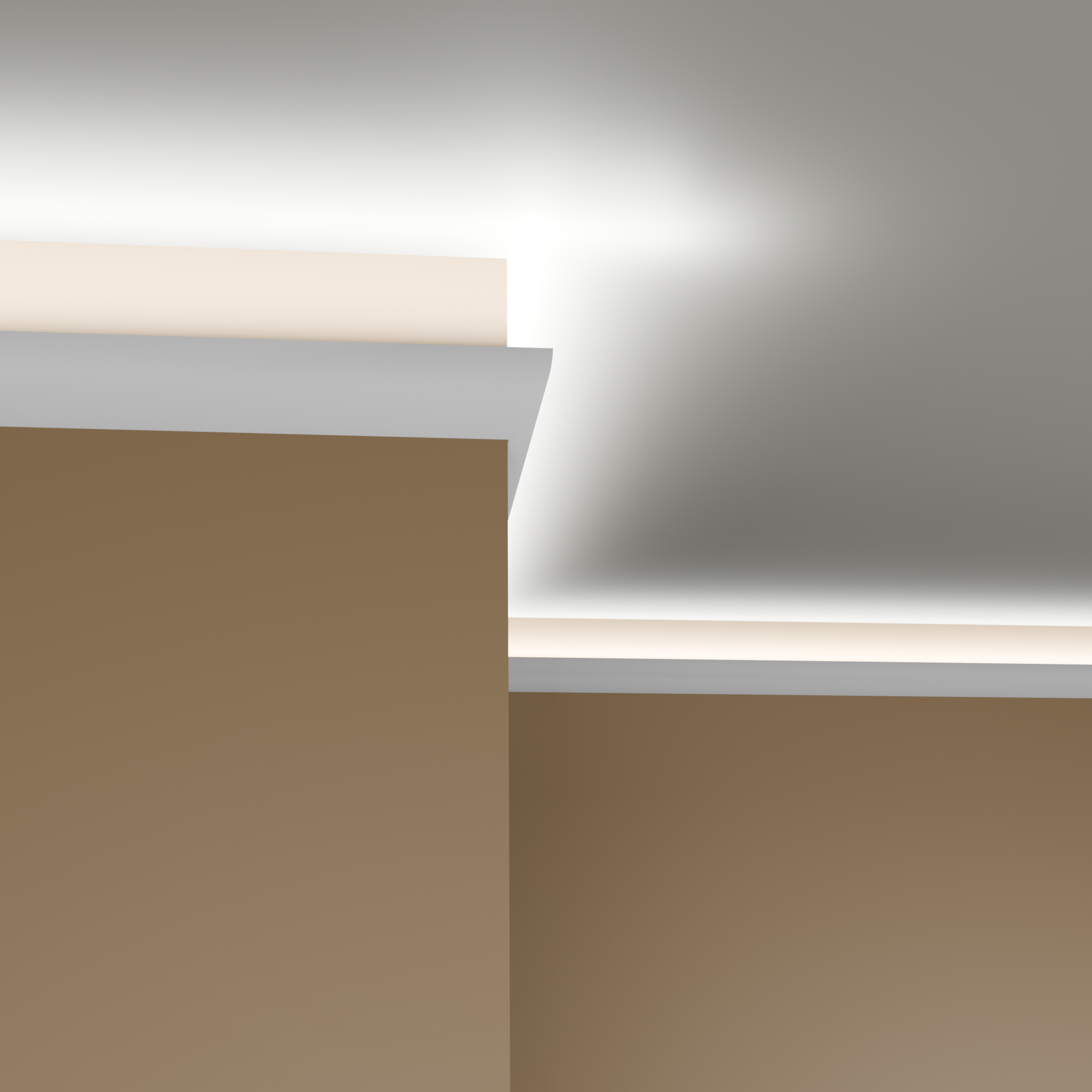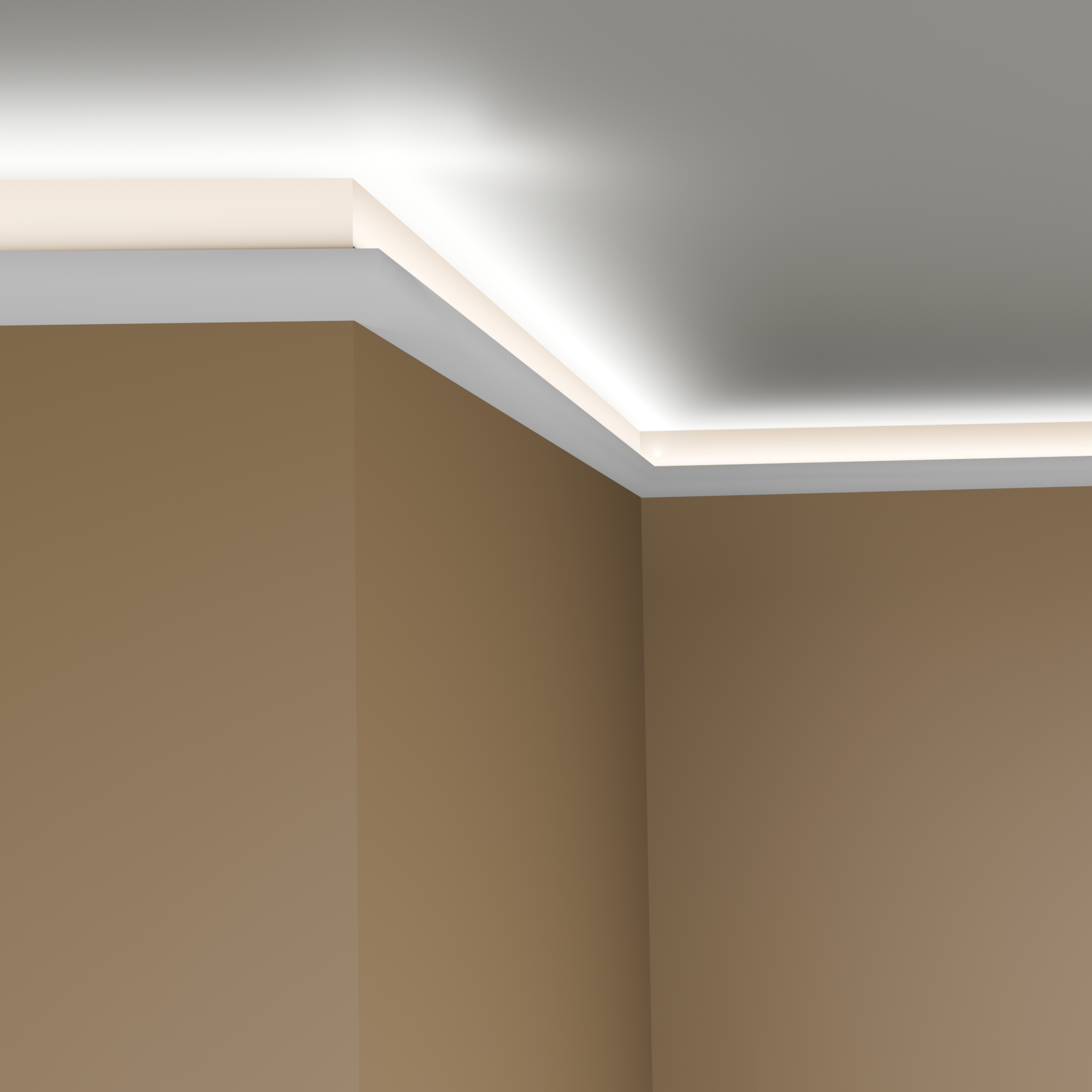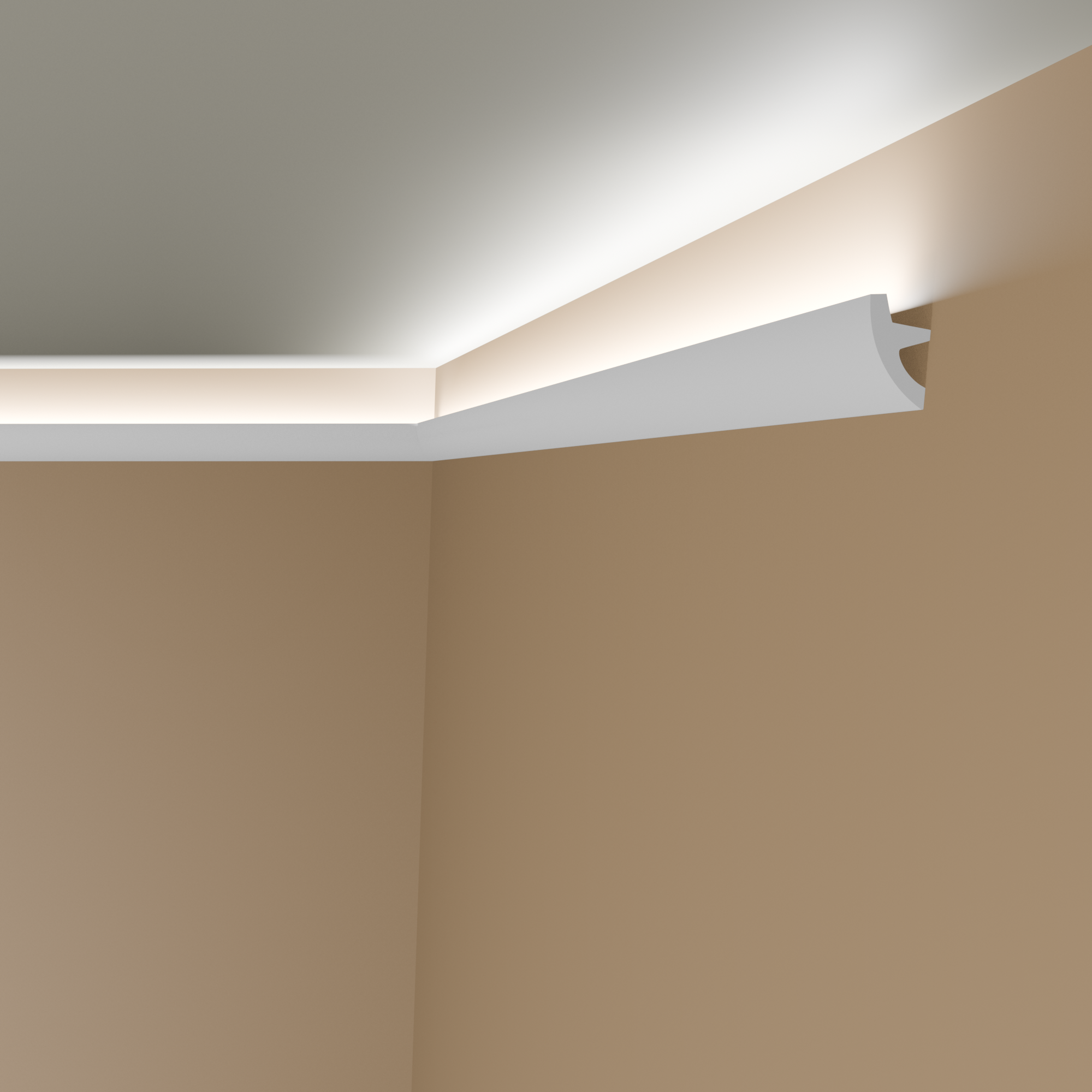 Unsere stilvoll gestalteten Deckenleisten sind für jede Raumgestaltung geeignet. Das zeitlose und moderne Profildesign sorgt für ein harmonisches Gesamtbild und eine nahtlose Verbindung von Wand und Decke. In der Nut dieser Leisten können flexible LED-Streifen eingefügt werden. Die indirekte LED-Beleuchtung schafft eine warme und einladende Atmosphäre. Passendes LED-Zubehör ist ebenfalls in unserem Shop erhältlich.