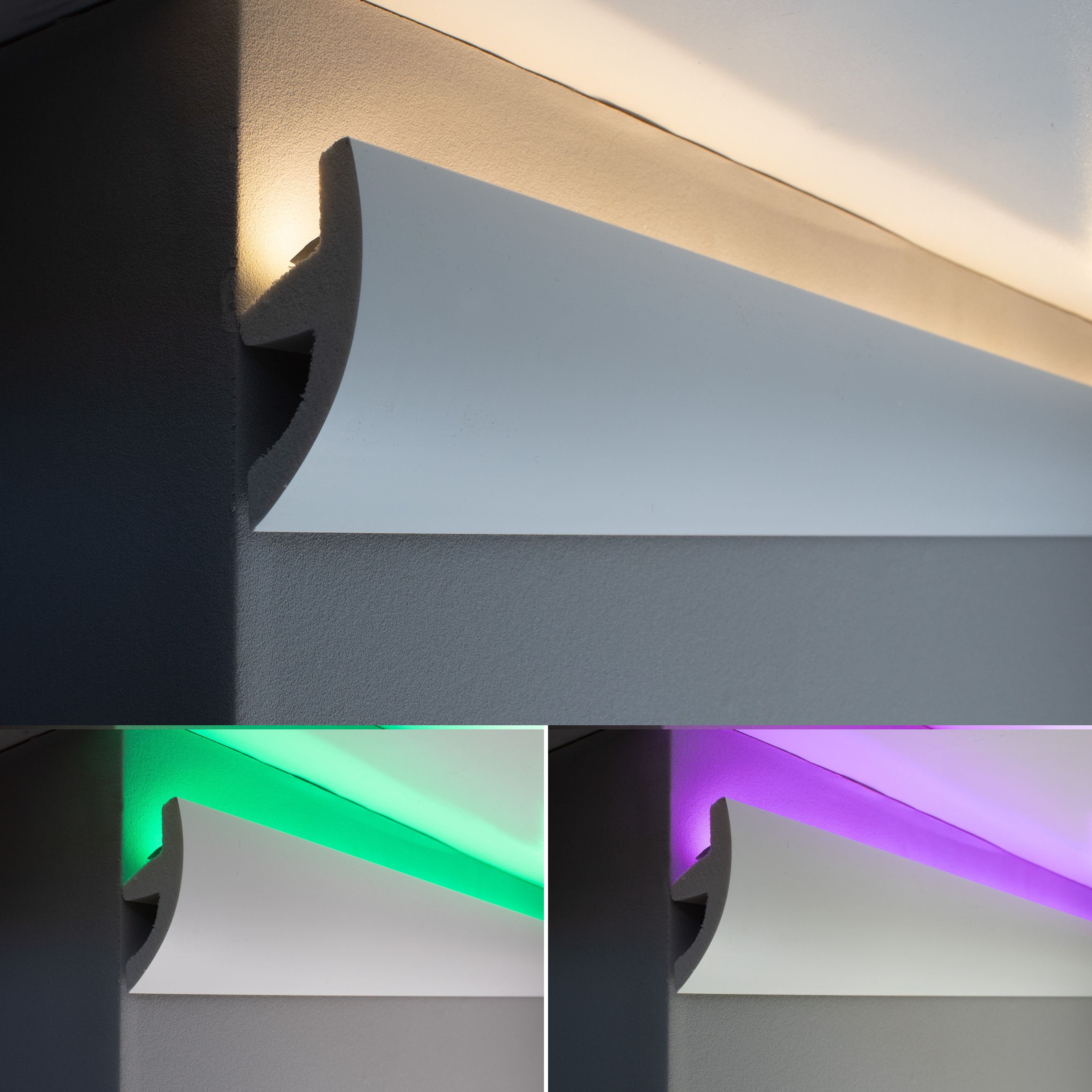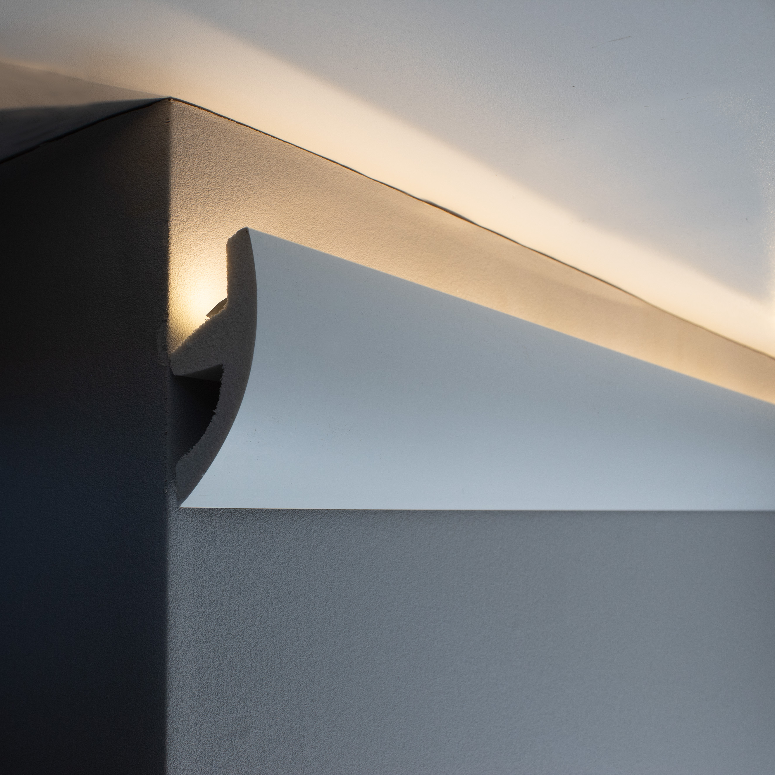 - MATERIAL: Diese Licht Stuckleiste wurde aus hochwertigem Kunststoff gefertigt und zeichnet sich durch ihre robuste und langlebige Qualität aus. Das Material ist vollkommen wasserbeständig