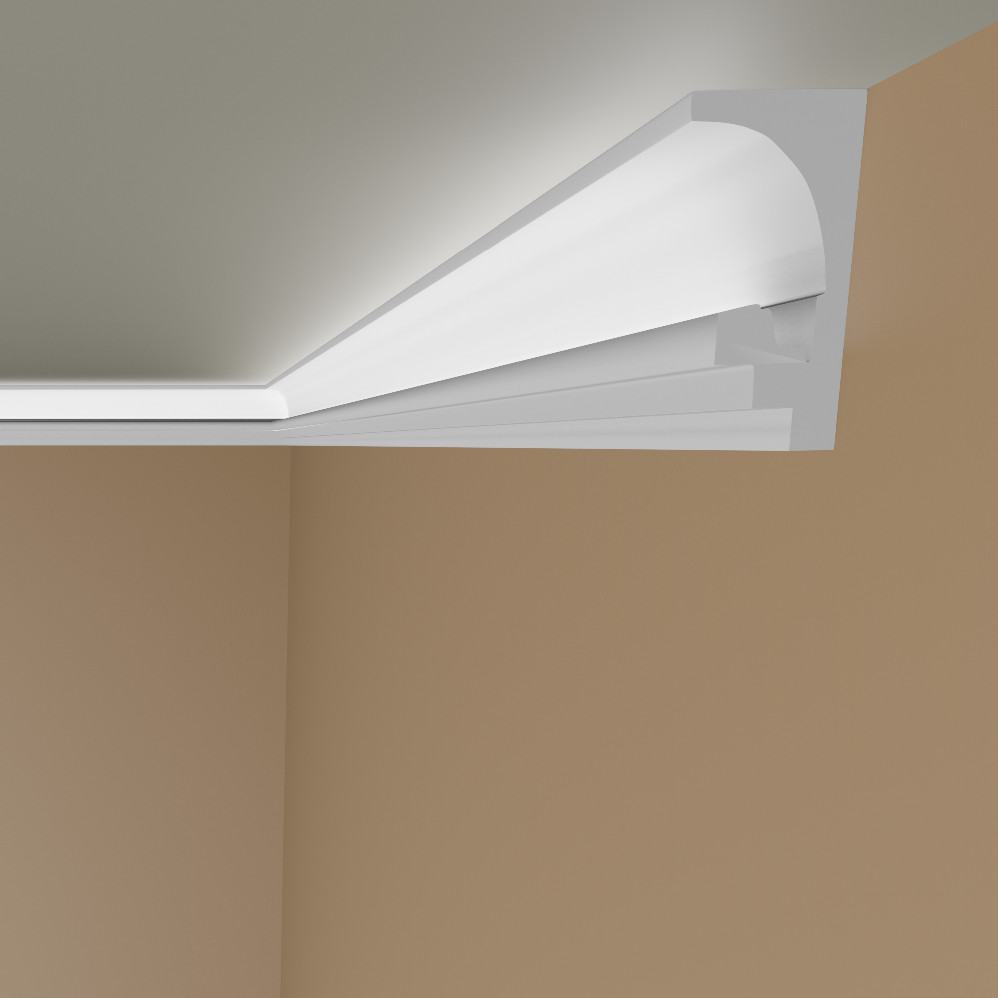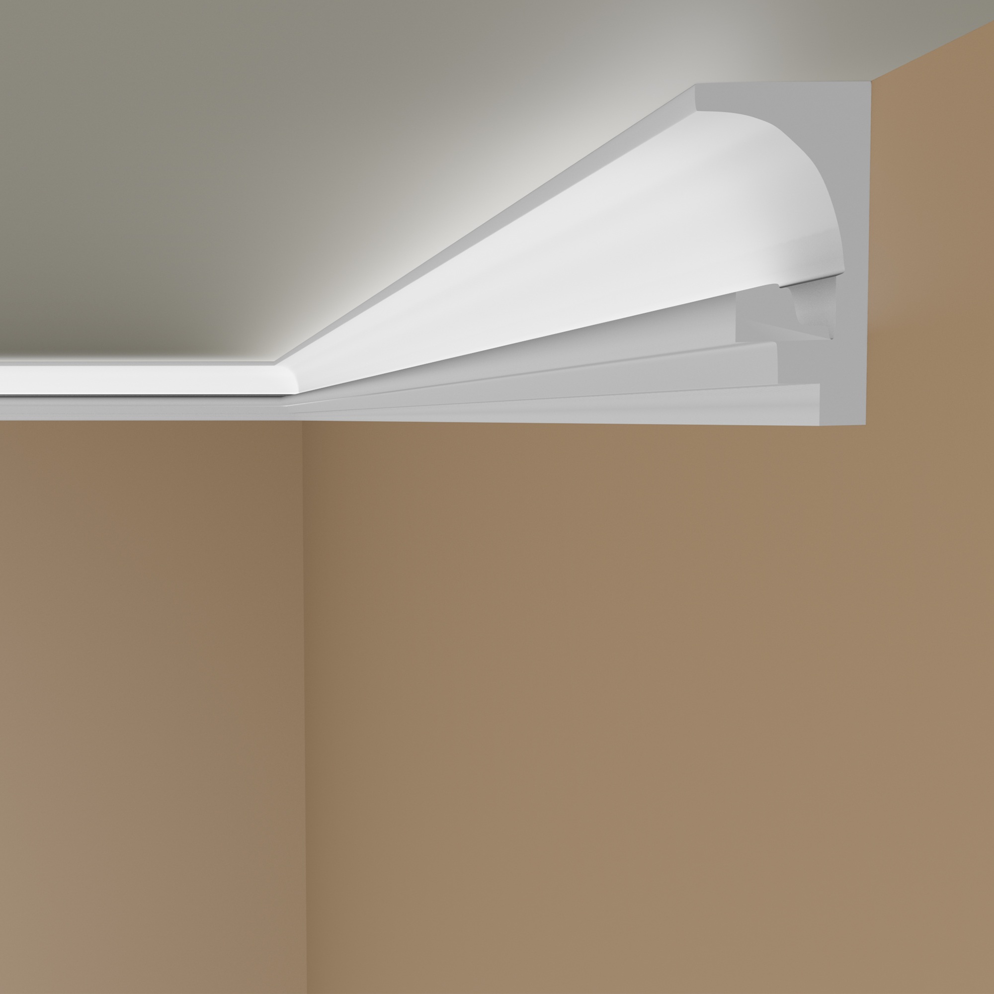 PROVISTON | Lichtleiste LL9 | Polystyrol Stuckleiste | 182 x 96 x 2000 mm | Weiß | Deckenleiste