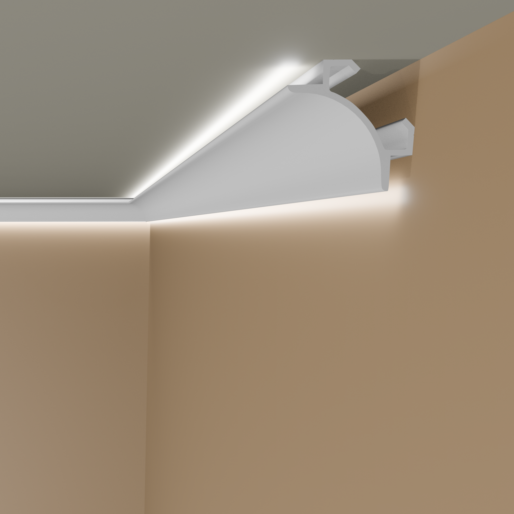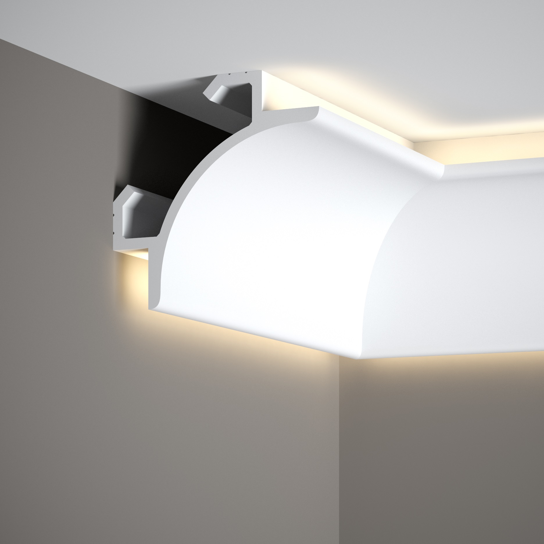 Diese Stuckleiste ist eine moderne und schlicht gestaltete Deckenleiste, die Sie in jedem Raum anbringen können. Das zeitlose zurückhaltende Profil-Design wirkt unaufdringlich und passt sich harmonisch an jedes Interior an.