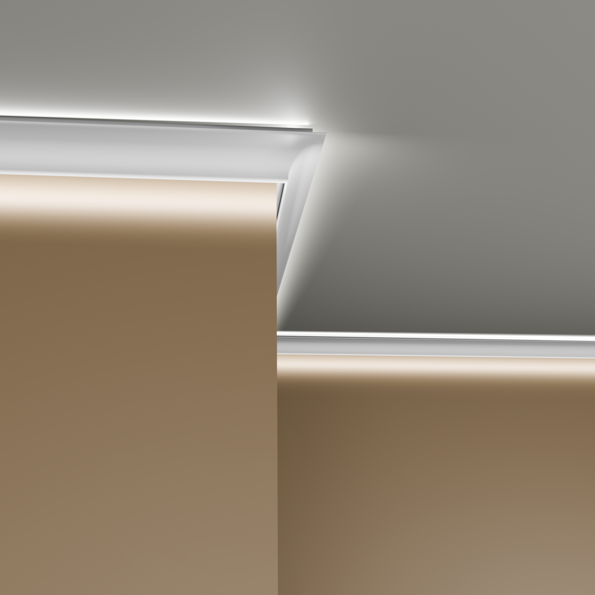 Die LED Stuckleiste lässt sich ganz einfach und sauber mit passendem Montagekleber befestigen. Sie ist zudem mit einer schützenden und glättenden Grundierung versehen, die eine optimale Grundlage für den späteren Anstrich bildet. Bestellen Sie unter "Zubehör" passendes Montagezubehör gleich mit dazu.