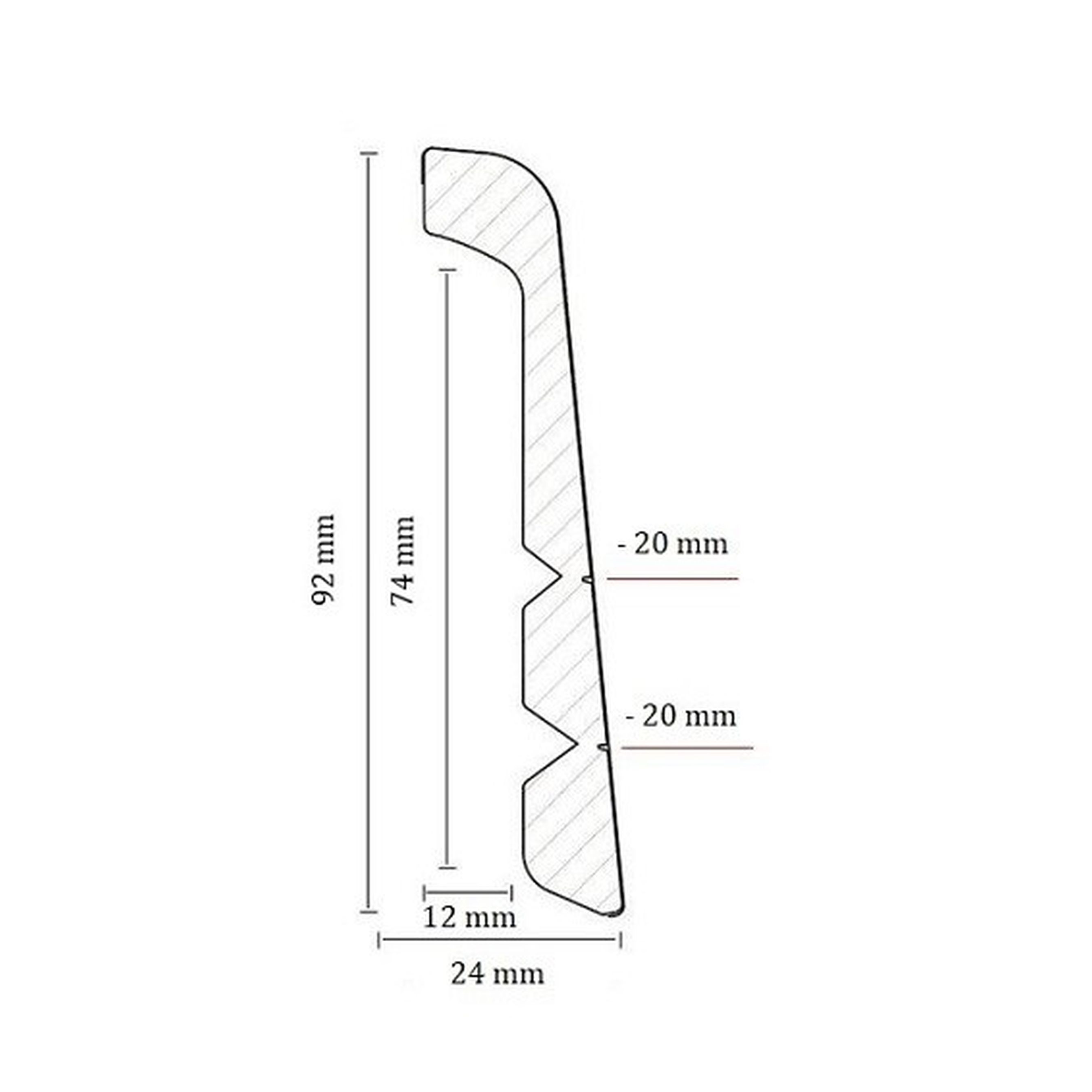 - GRÖSSE: Die Fußleiste mit den Abmessungen 24 x 92 x 2400 mm schafft einen sauberen Übergang zwischen Boden und Wand.