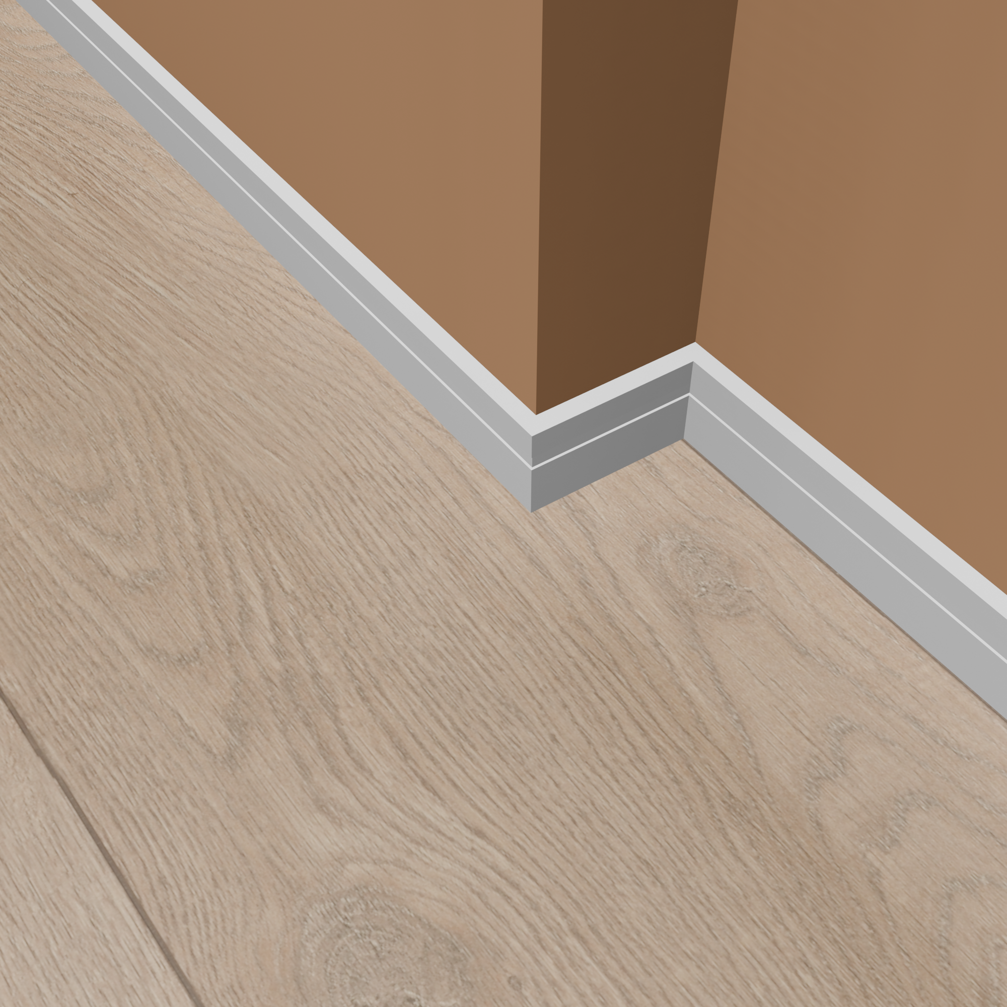 Diese Sockelleiste aus hochwertigem Kunststoff besticht vor allem durch das moderne und schlicht gestaltete Profil. Das klare Design ist zeitlos und sorgt für ein stimmiges Raumbild. Dank des festen widerstandsfähigen Materials ist die Fußleiste besonders langlebig, feuchtigkeitsbeständig und sehr pflegeleicht. So wirst Du lange Freude daran haben.