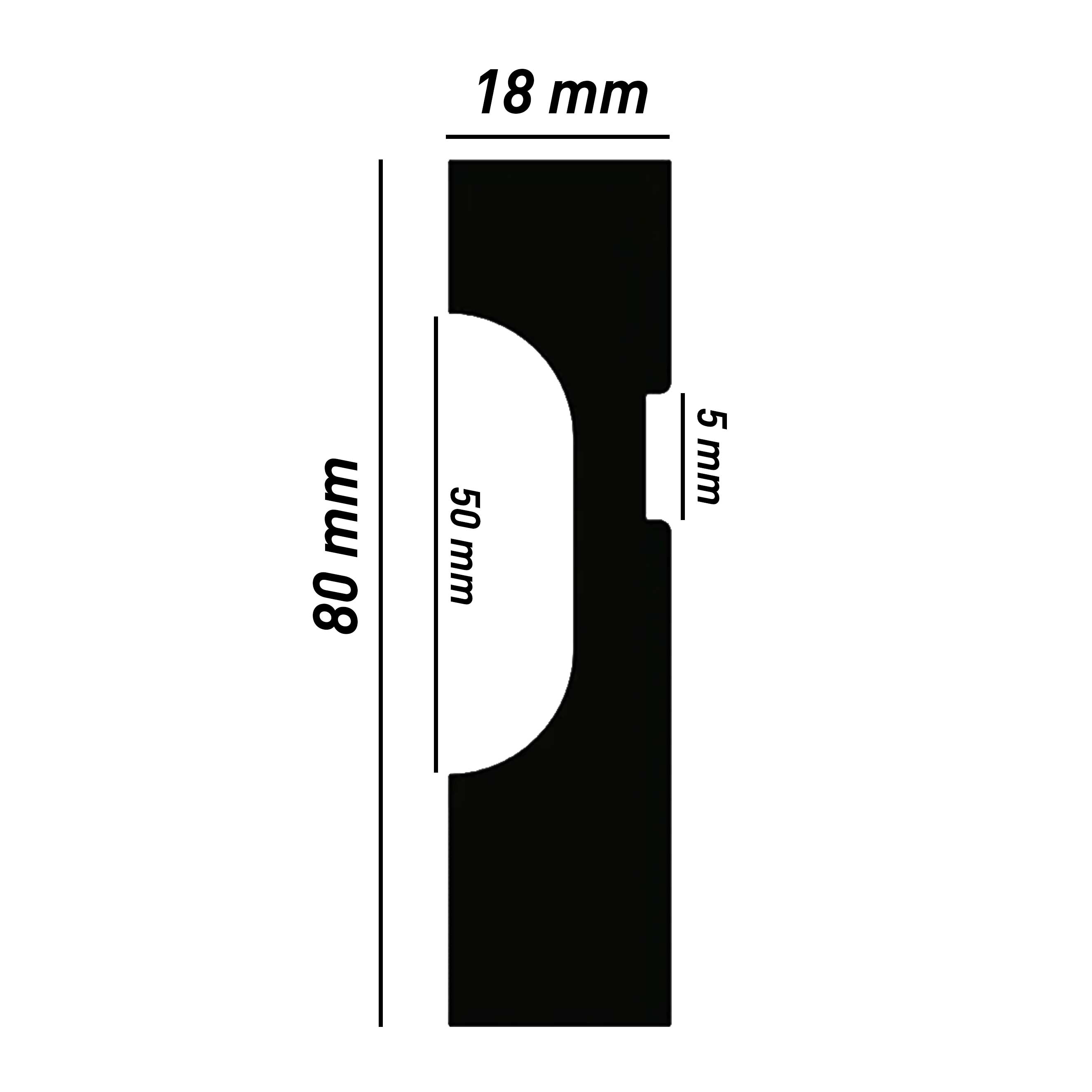 - GRÖSSE: Die Fußleiste mit den Abmessungen 18 x 80 x 2000 mm schafft einen sauberen Übergang zwischen Boden und Wand.