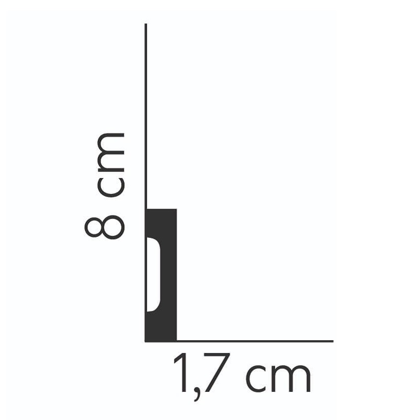 - GRÖSSE: Die Fußleiste mit den Abmessungen 17 x 80 x 2000 mm schafft einen sauberen Übergang zwischen Boden und Wand.