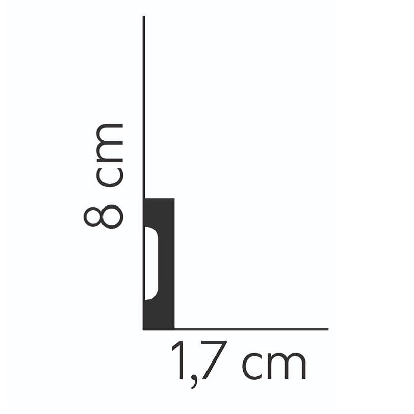 - GRÖSSE: Die Fußleiste mit den Abmessungen 17 x 80 x 2000 mm schafft einen sauberen Übergang zwischen Boden und Wand.