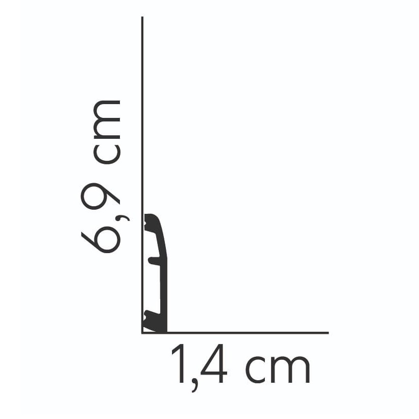 - GRÖSSE: Die Fußleiste mit den Abmessungen 14 x 69 x 2000 mm schafft einen sauberen Übergang zwischen Boden und Wand.