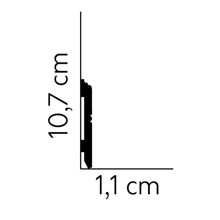 - GRÖSSE: Die Fußleiste mit den Abmessungen 11 x 107 x 2000 mm schafft einen sauberen Übergang zwischen Boden und Wand.