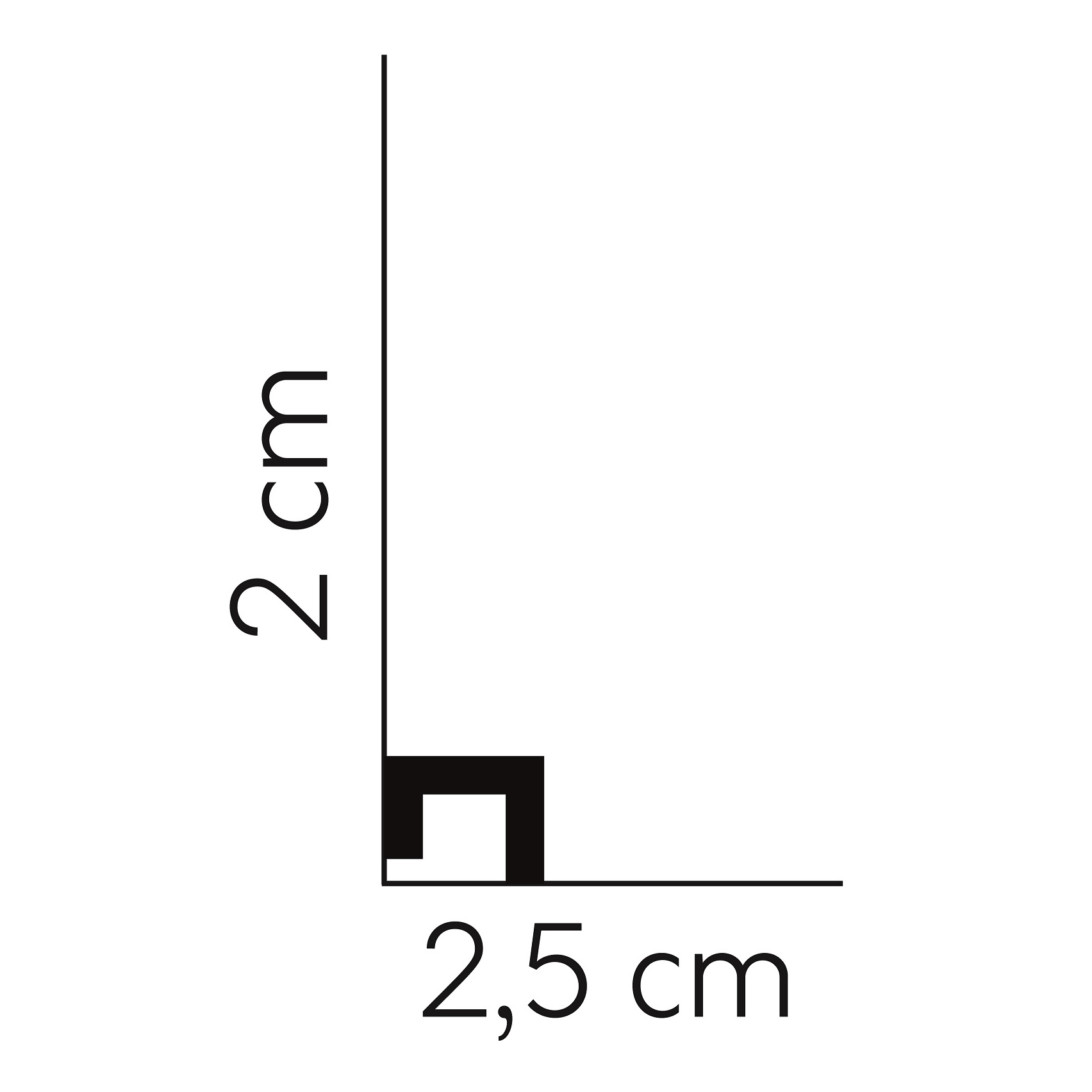 - GRÖSSE: Die Fußleiste mit den Abmessungen 25 x 20 x 2000 mm schafft einen sauberen Übergang zwischen Boden und Wand.