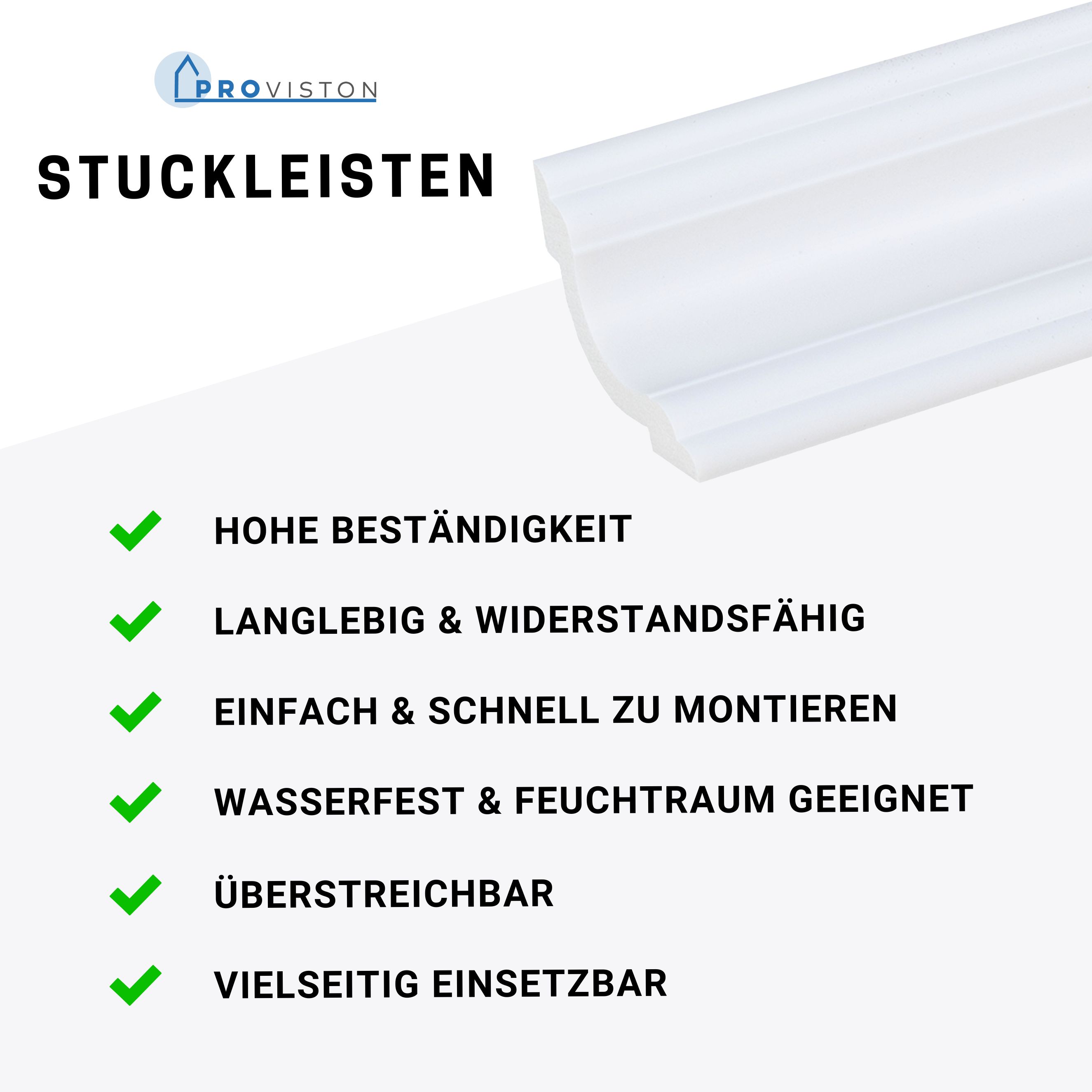 PROVISTON Stuckleiste Kunststoff Weiß | 20 x 71 x 2000 mm Moderne Leiste für die Decke