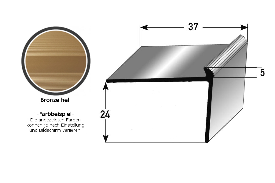 - GRÖSSE: Das Winkelprofil mit den Abmessungen 37 x 24 x 2700 mm hat eine Einfasshöhe von 3 mm und schafft einen sauberen Abschluss an der Treppenkante.