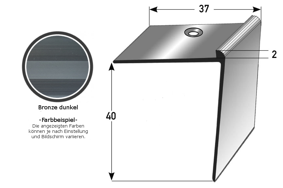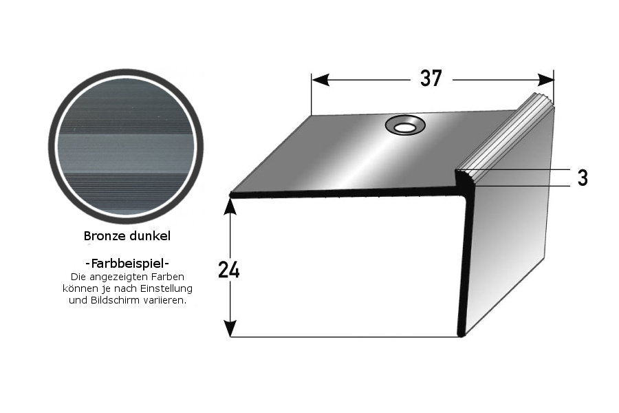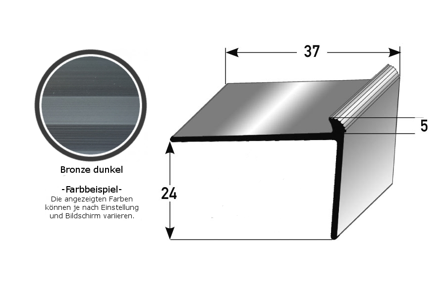 - GRÖSSE: Das Winkelprofil mit den Abmessungen 37 x 24 x 2700 mm hat eine Einfasshöhe von 5 mm und schafft einen sauberen Abschluss an der Treppenkante.