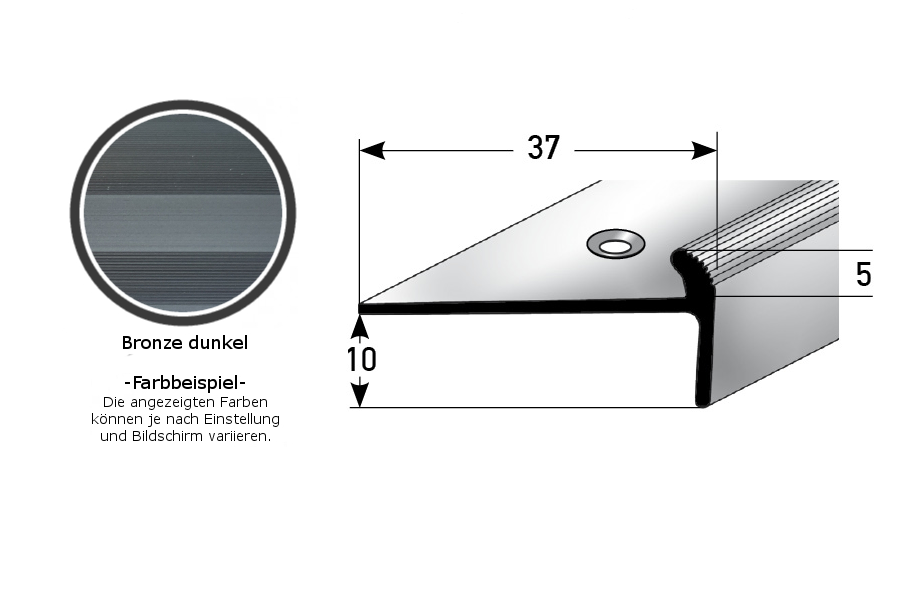 - GRÖSSE: Das Winkelprofil mit den Abmessungen 37 x 10 x 2700 mm hat eine Einfasshöhe von 5 mm und schafft einen sauberen Abschluss an der Treppenkante.