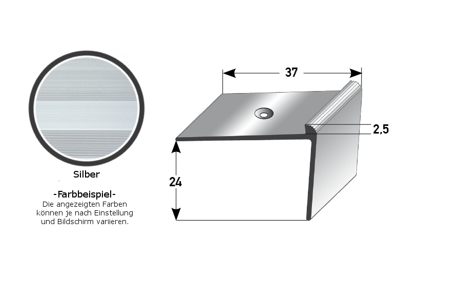 - GRÖSSE: Das Winkelprofil mit den Abmessungen 37 x 24 x 1000 mm hat eine Einfasshöhe von 2.5 mm und schafft einen sauberen Abschluss an der Treppenkante.