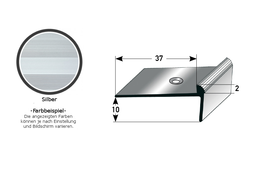 - GRÖSSE: Das Winkelprofil mit den Abmessungen 37 x 10 x 2700 mm hat eine Einfasshöhe von 2 mm und schafft einen sauberen Abschluss an der Treppenkante.