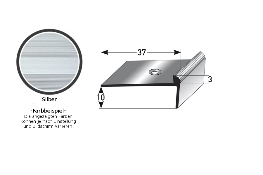- GRÖSSE: Das Winkelprofil mit den Abmessungen 37 x 10 x 2700 mm hat eine Einfasshöhe von 3 mm und schafft einen sauberen Abschluss an der Treppenkante.